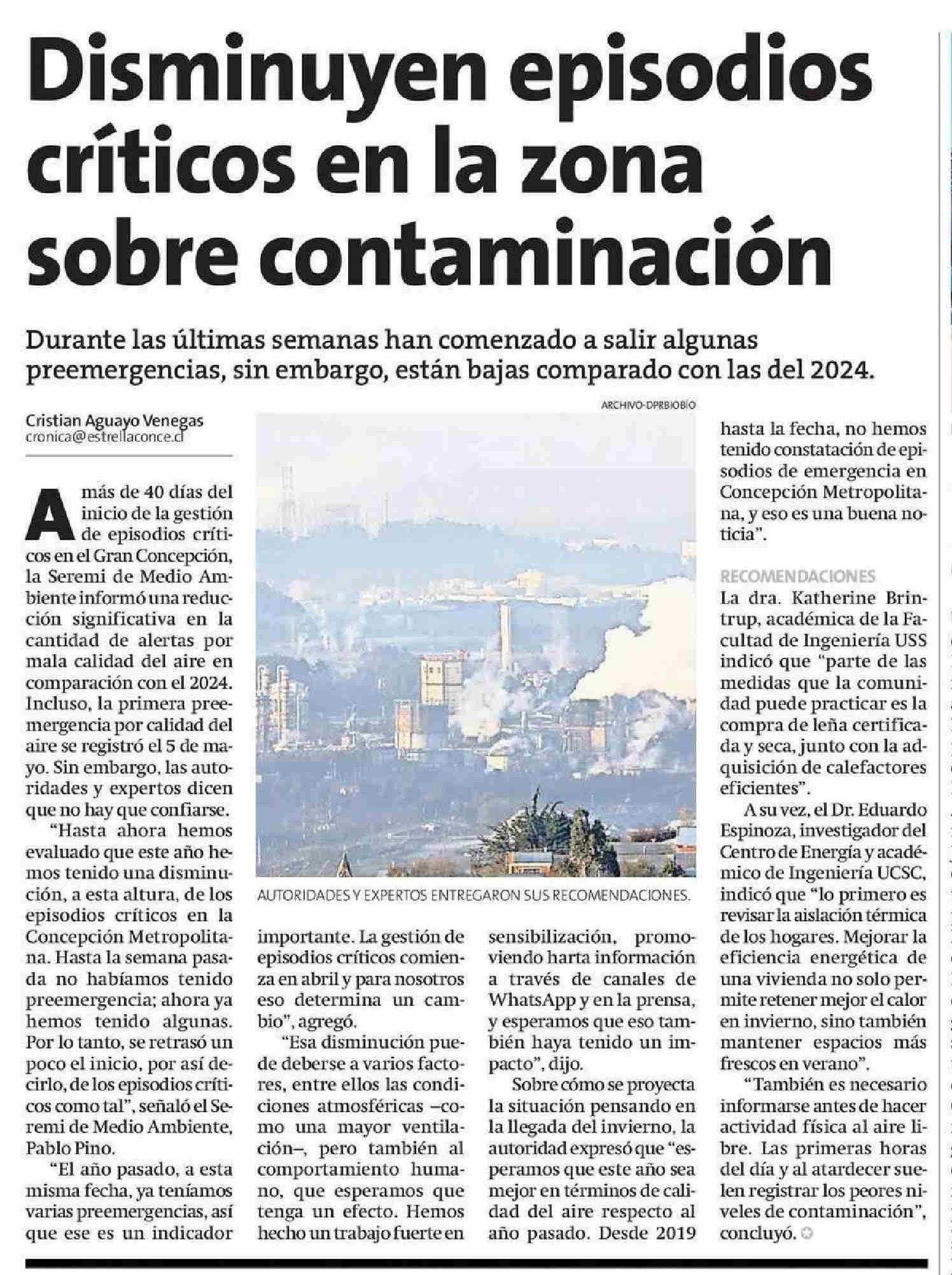 Disminuyen episodios sobre contaminación críticos en la zona 11-06-2025 La Estrella de Concepción |