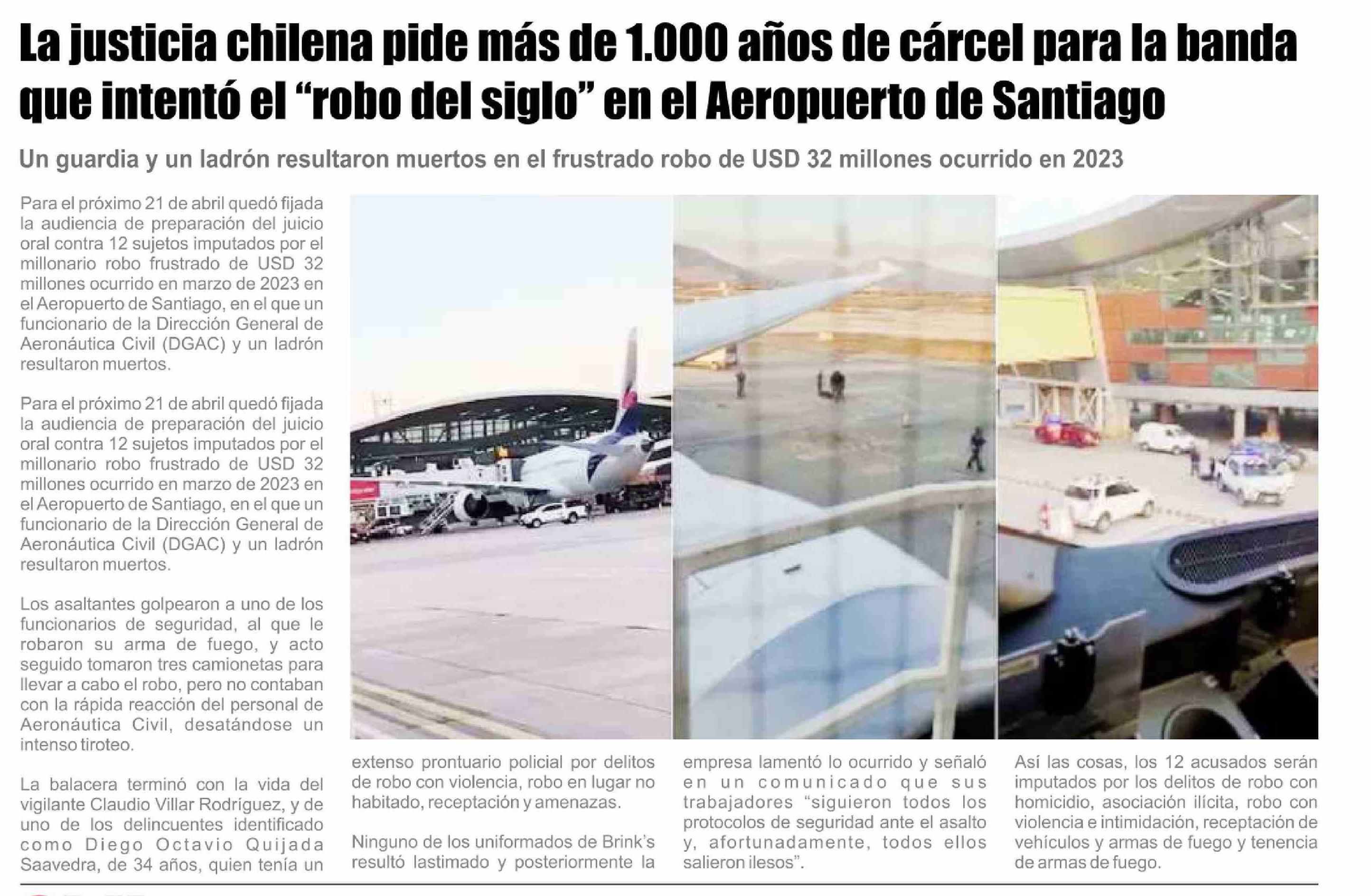 Título: La justicia chilena pide más de 1.000 años de cárcel para la banda que intentó el "robo del siglo" en el Aeropuerto de Santiago