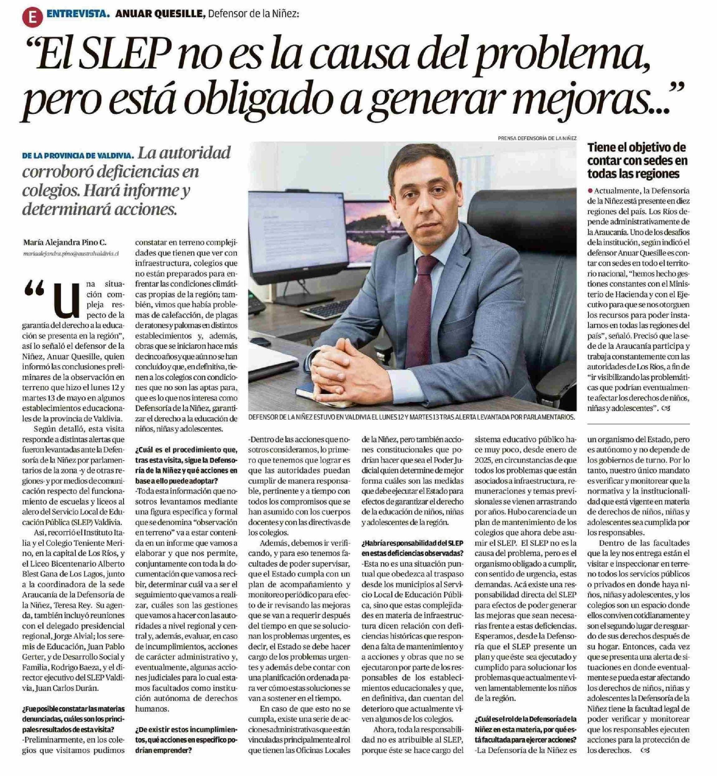 "El SLEP no es la causa del problema, pero está obligado a generar mejoras, 19-05-2025 Diario Austral Región de Los Ríos |