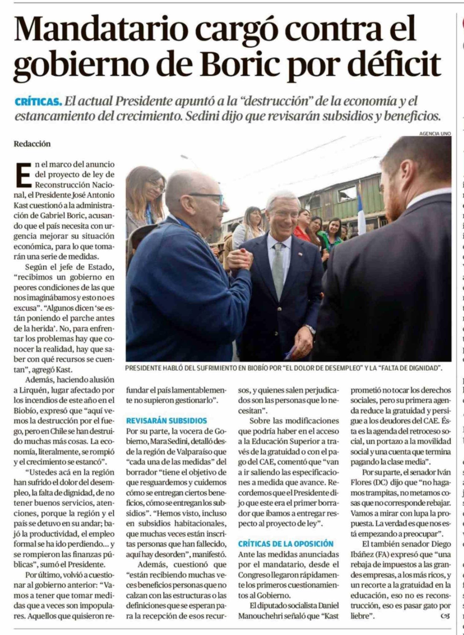 Título: Mandatario cargó contra el gobierno de Boric por déficit