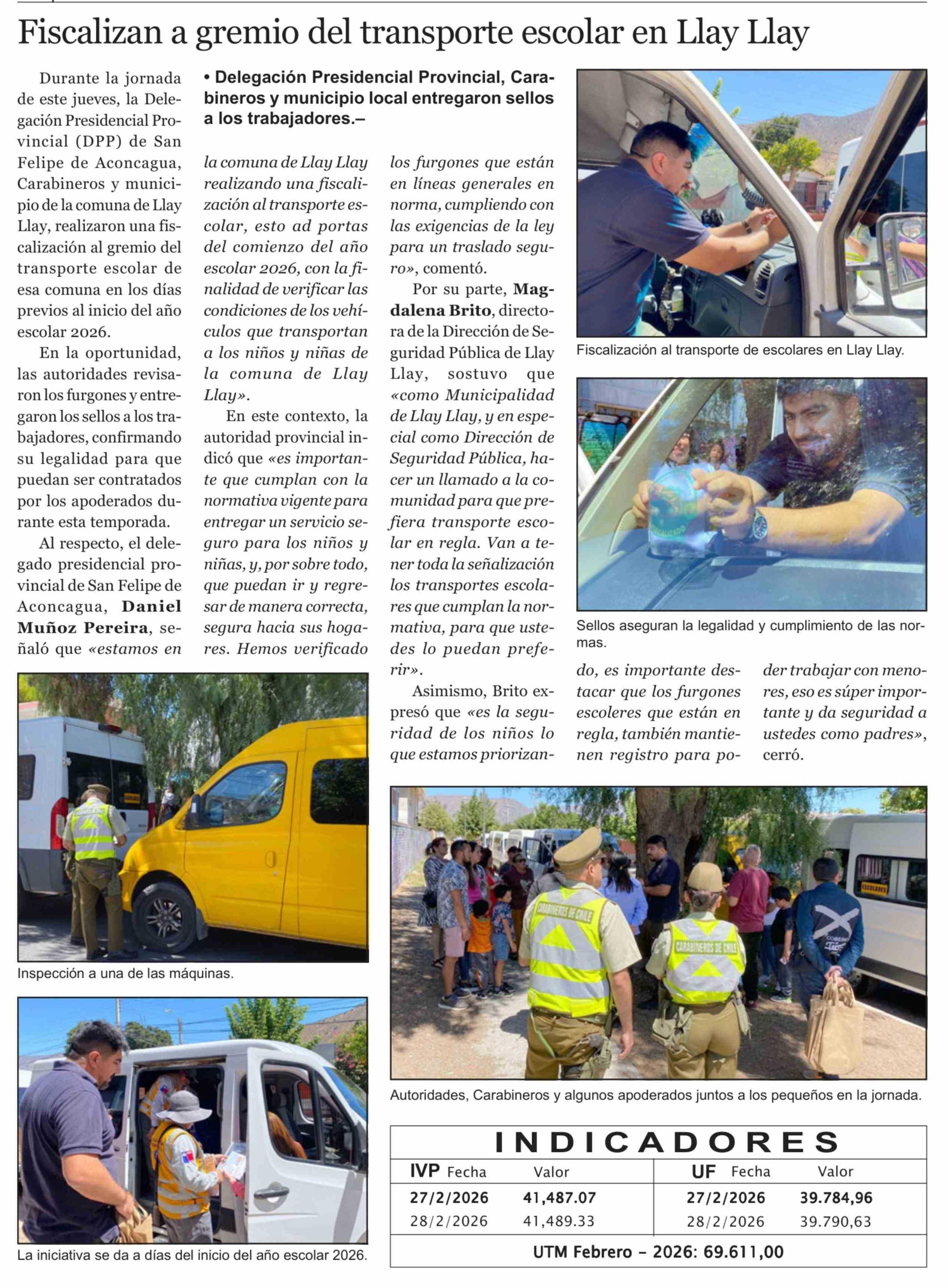 Fiscalizan a gremio del transporte escolar en Llay Llay 27-02-2026 El Trabajo |