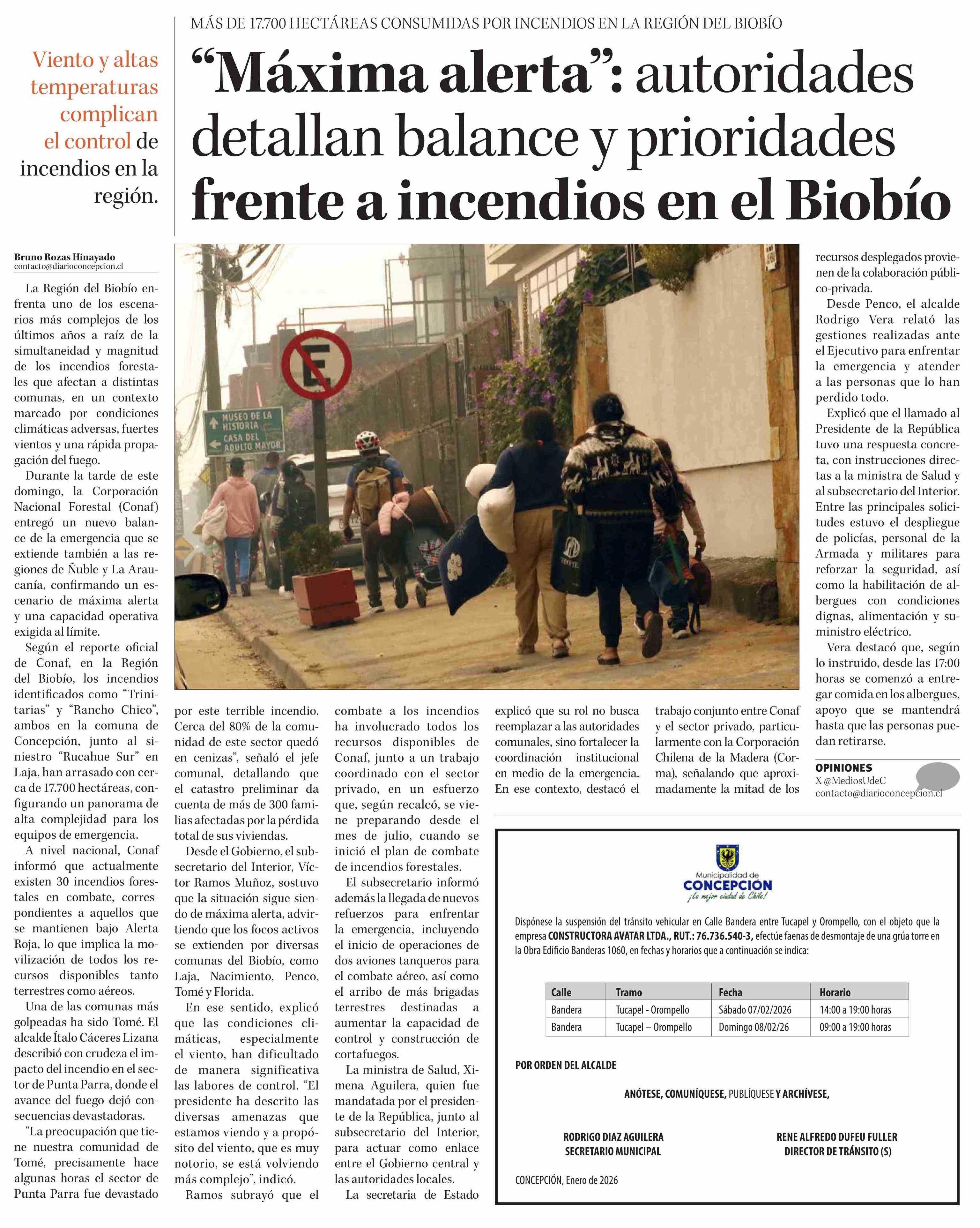 "Máxima alerta": autoridades detallan balance y prioridades frente a incendios en el Biobío 19-01-2026 Diario Concepción |