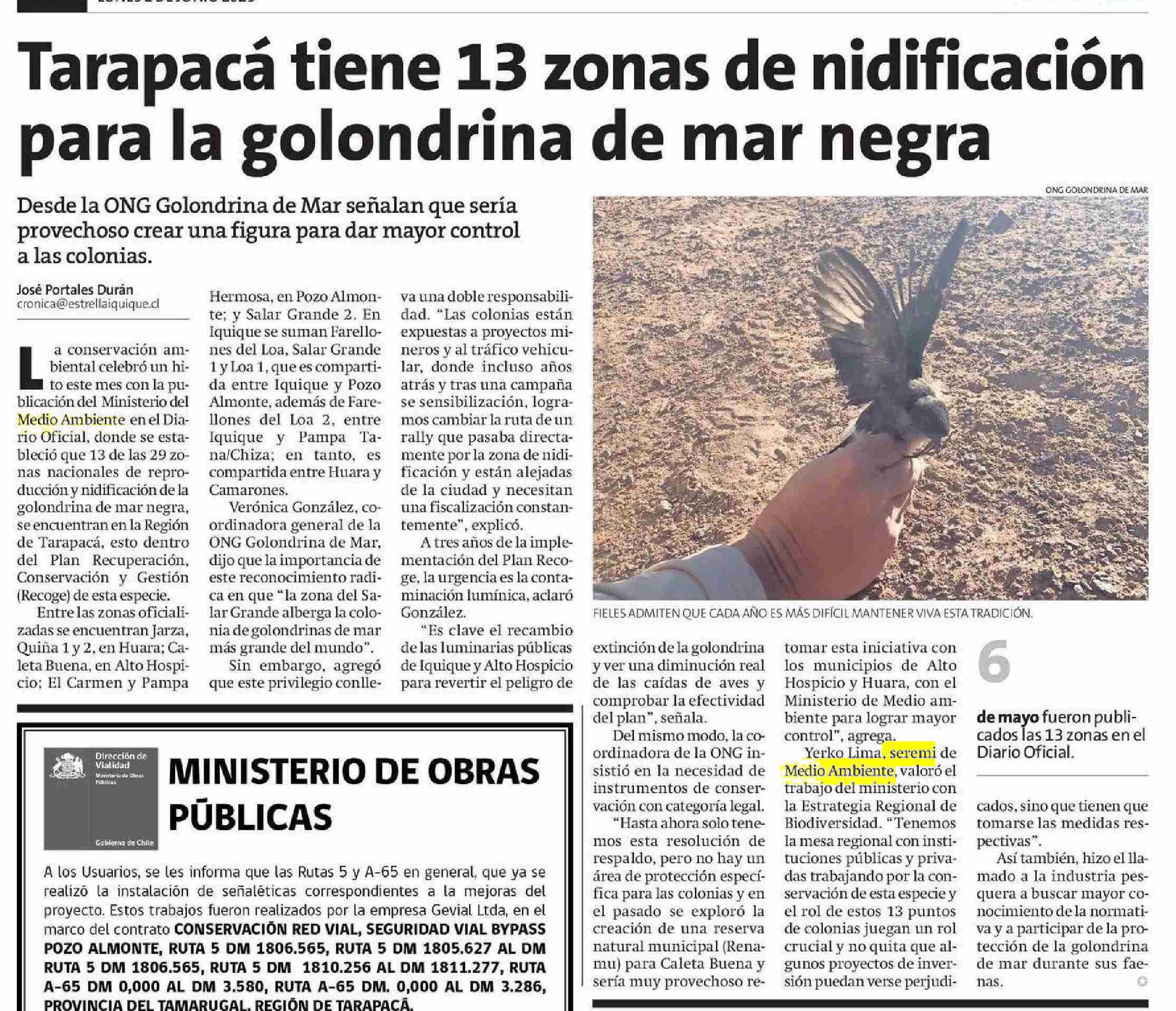 | Título: | Tarapacá tiene 13 zonas de nidificación para la golondrina de mar negra |