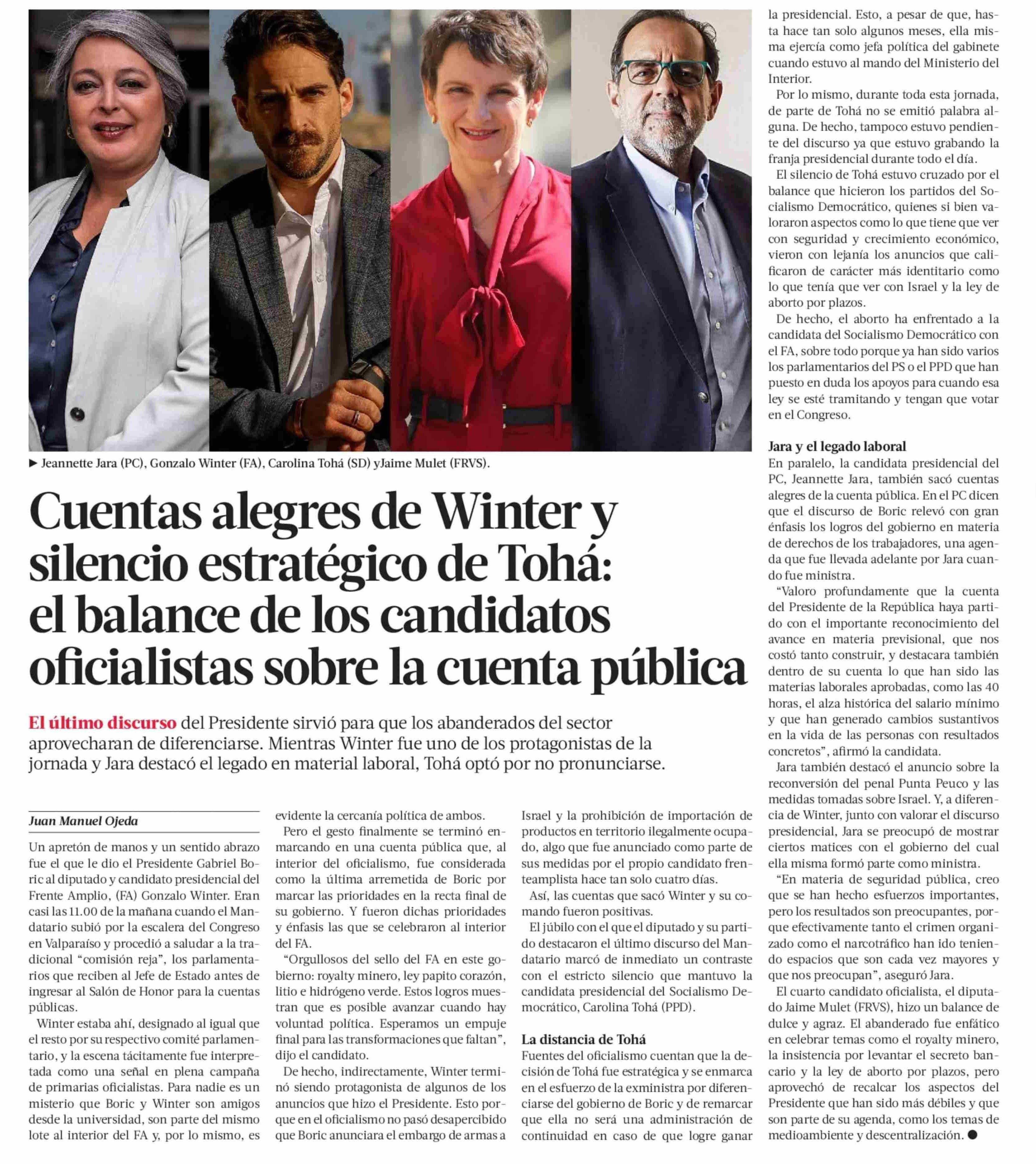 Título: Cuentas alegres de Winter y silencio estratégico de Tohá: el balance de los candidatos oficialistas sobre la cuenta pública