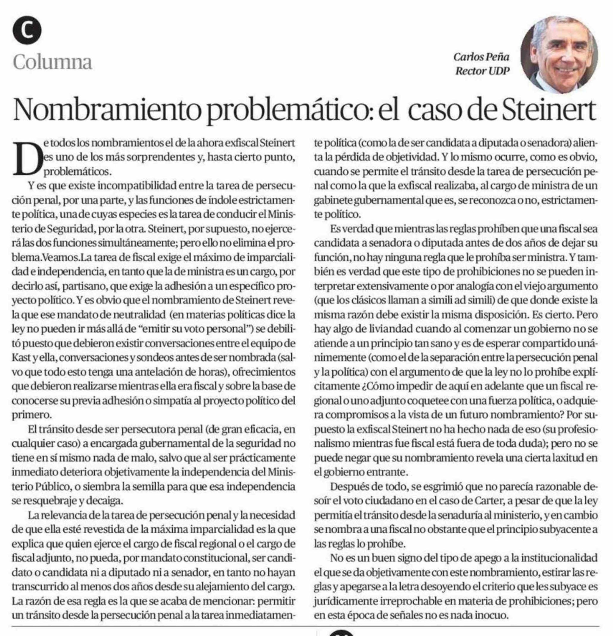 Columnas de Opinión: Nombramiento problemático: el caso de Steinert 21-01-2026 El Mercurio de Antofagasta |