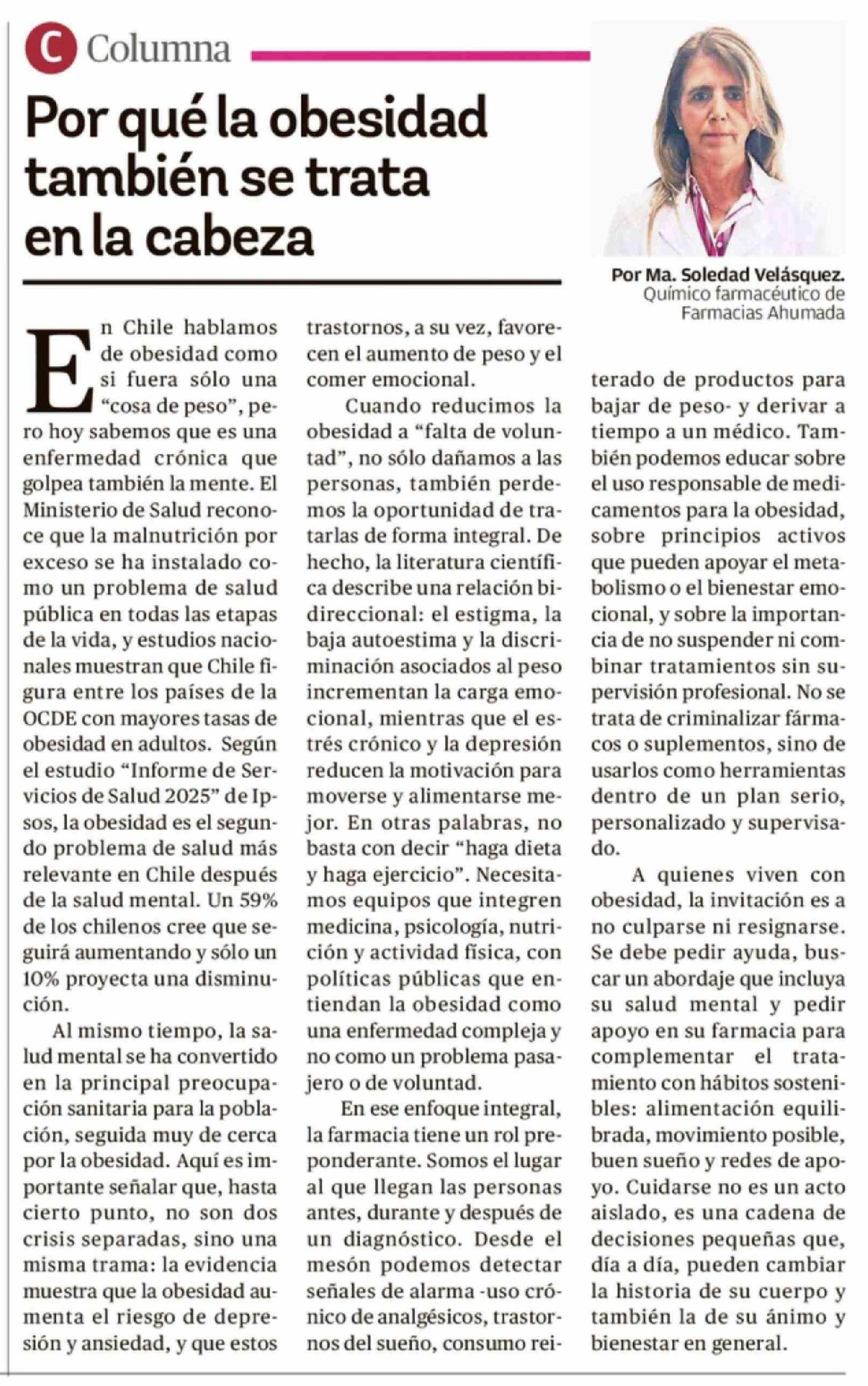 Título: Columnas de Opinión: Por qué la obesidad también se trata en la cabeza