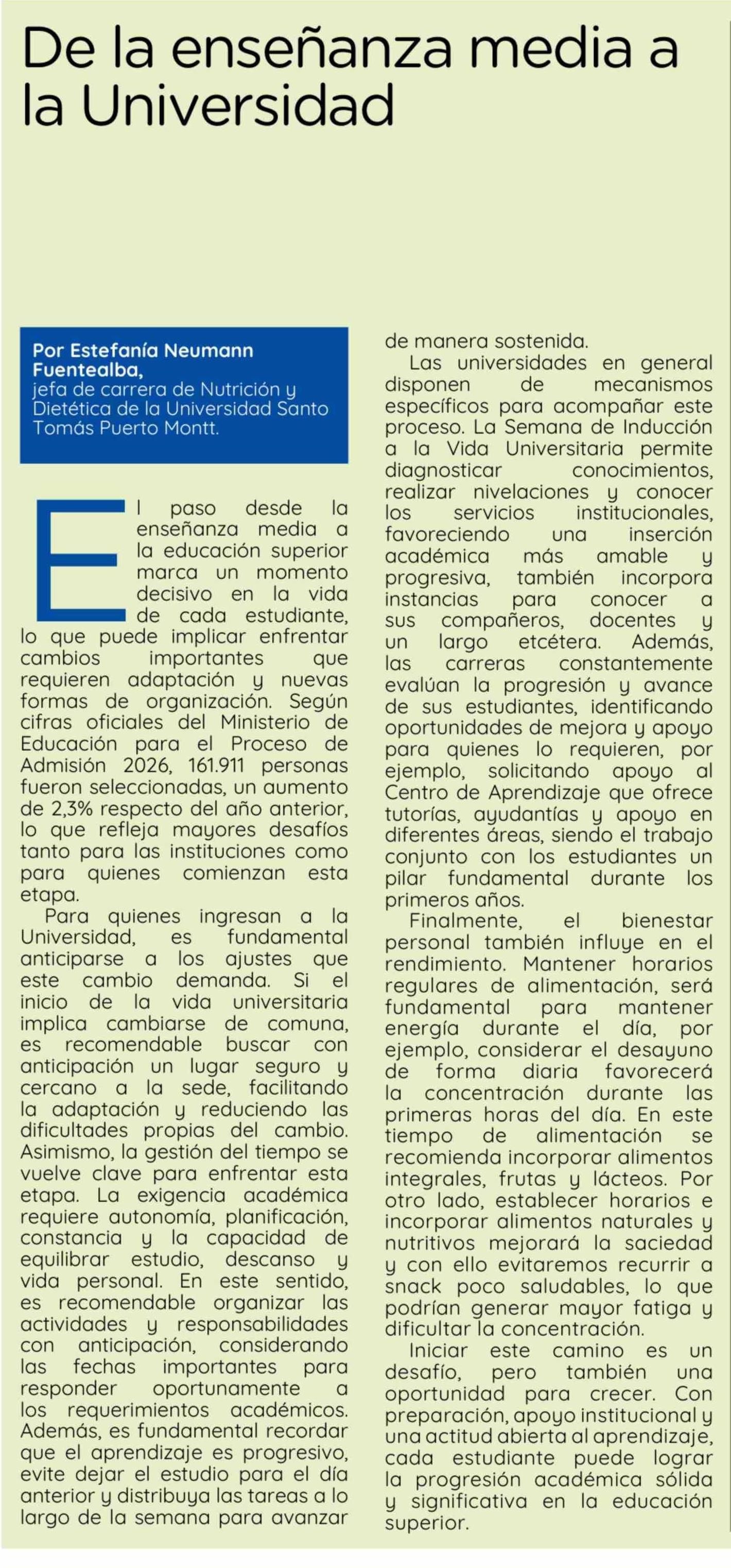 Columnas de Opinión: De la enseñanza media a la Universidad