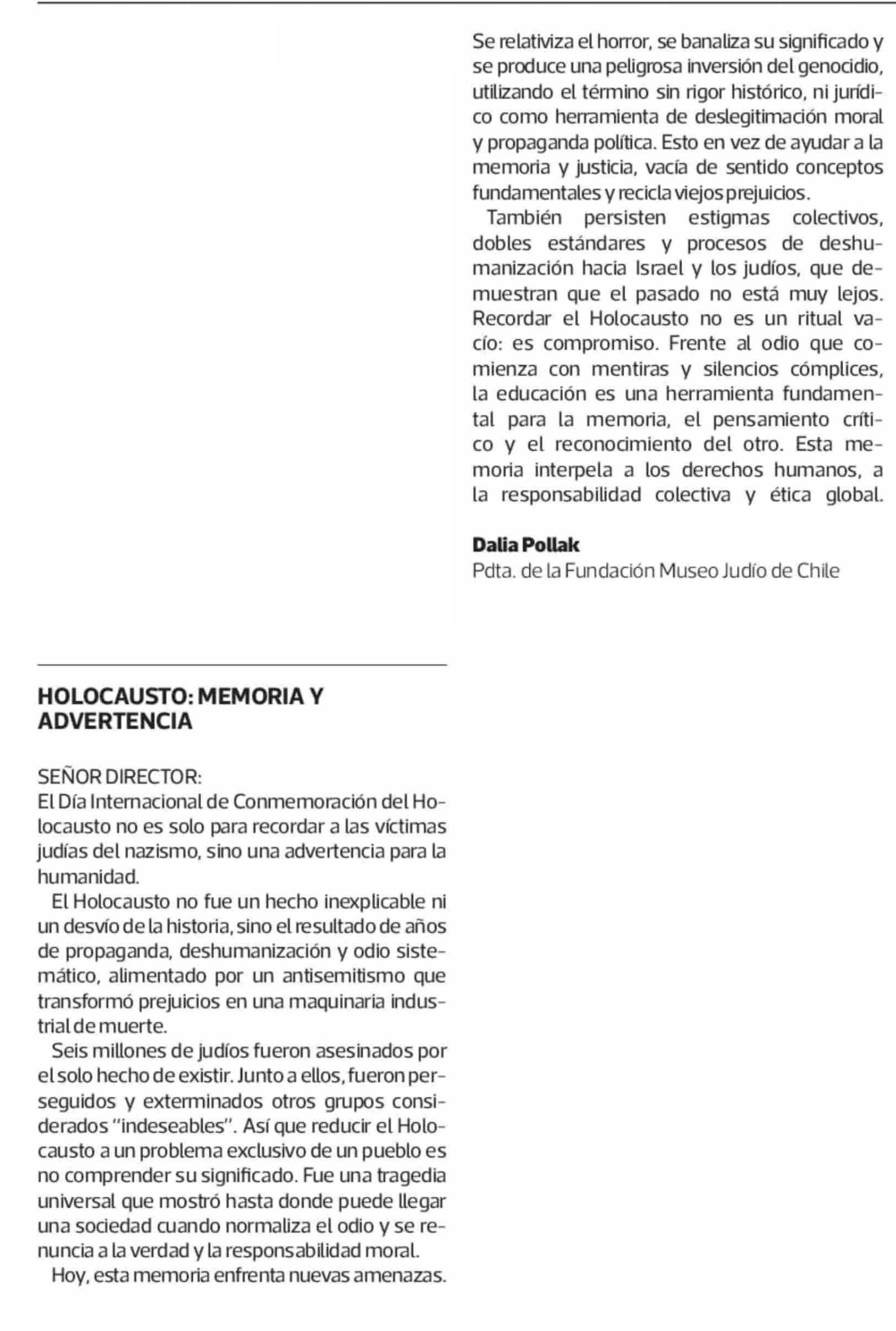 CARTAS: HOLOCAUSTO: MEMORIA Y ADVERTENCIA
