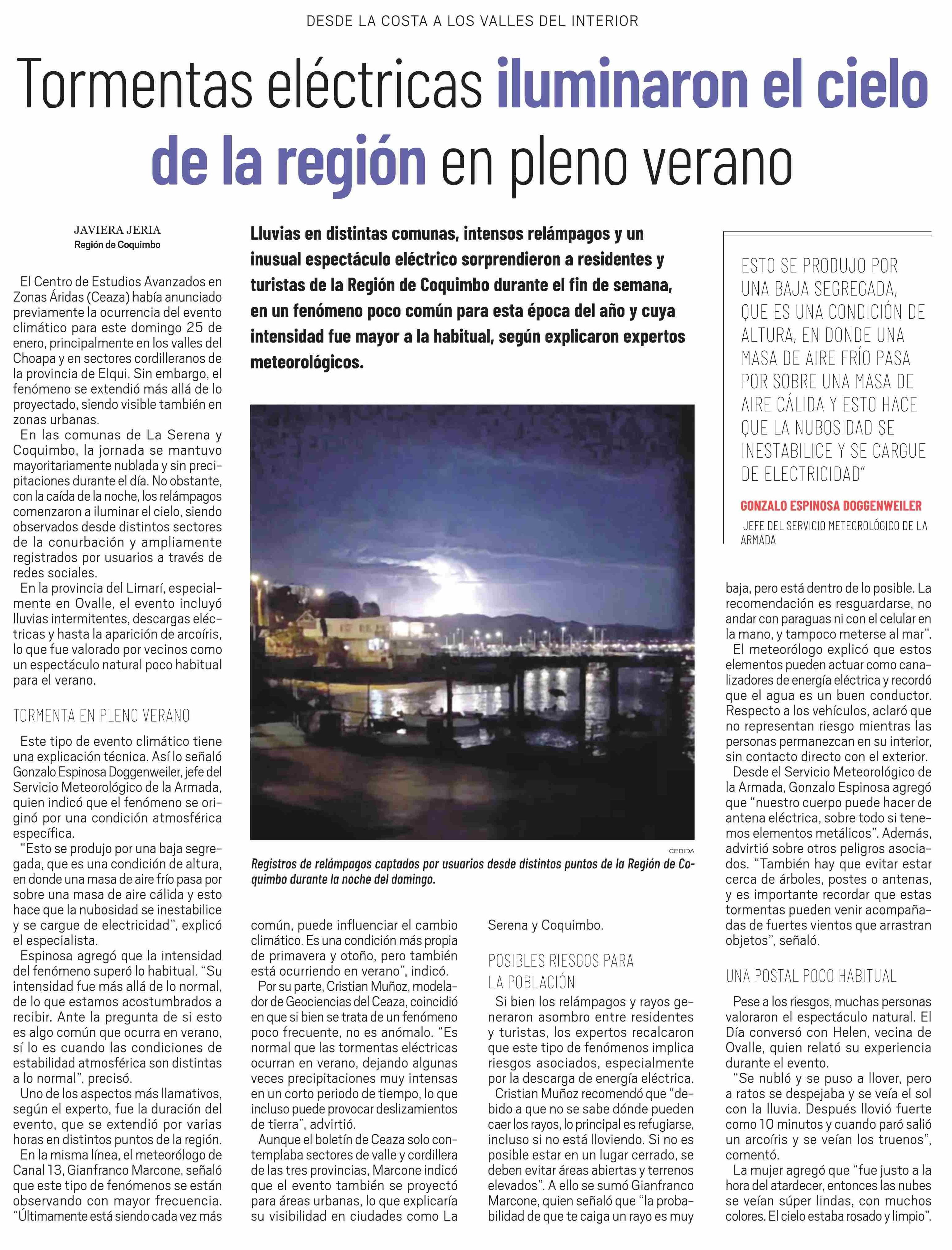 Tormentas eléctricas iluminaron el cielo de la región en pleno verano 27-01-2026 El Ovallino |