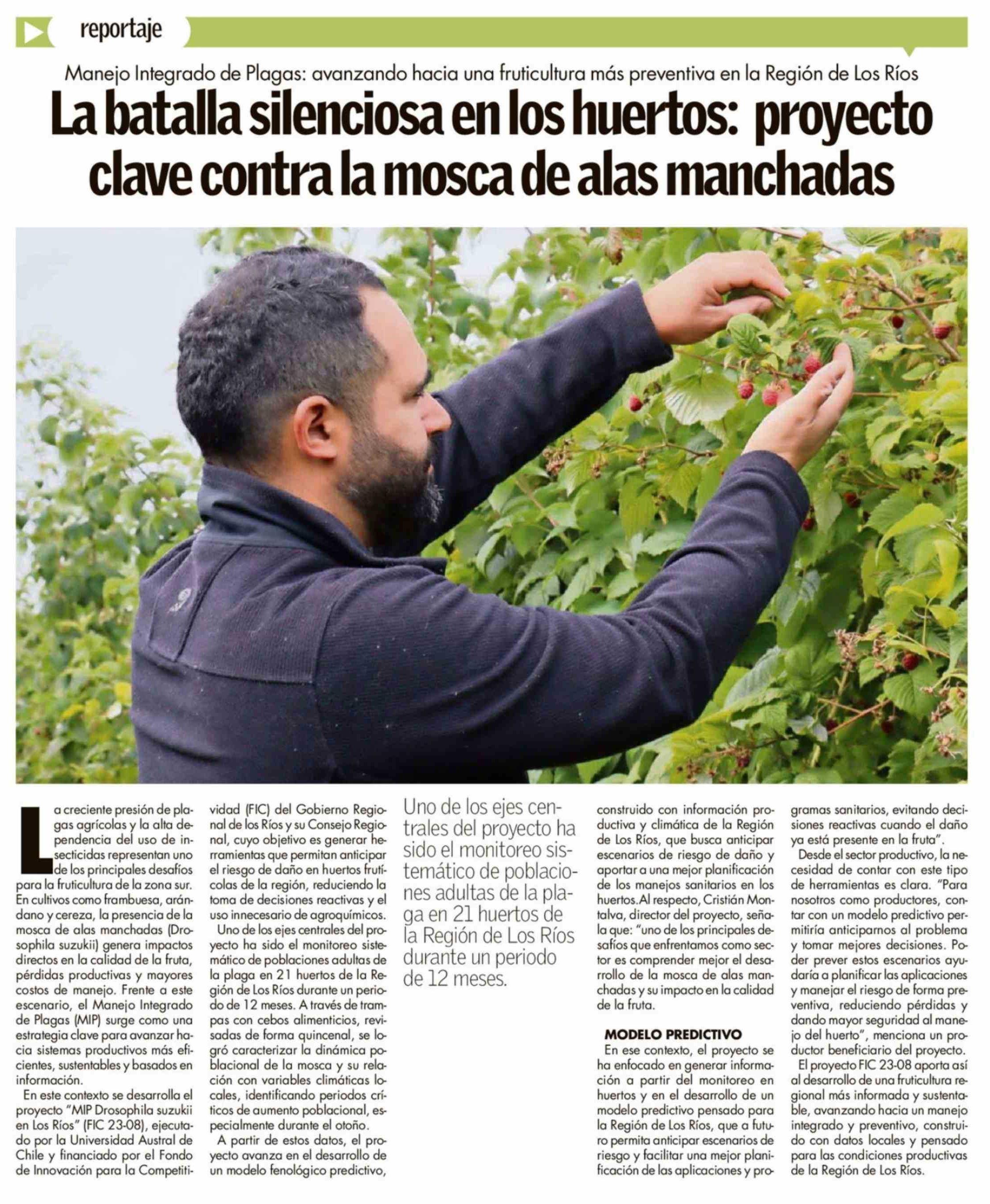 La batalla silenciosa en los huertos: proyecto clave contra la mosca de alas manchadas 16-02-2026 Campo Sureño - Regiones IX, X y XIV |