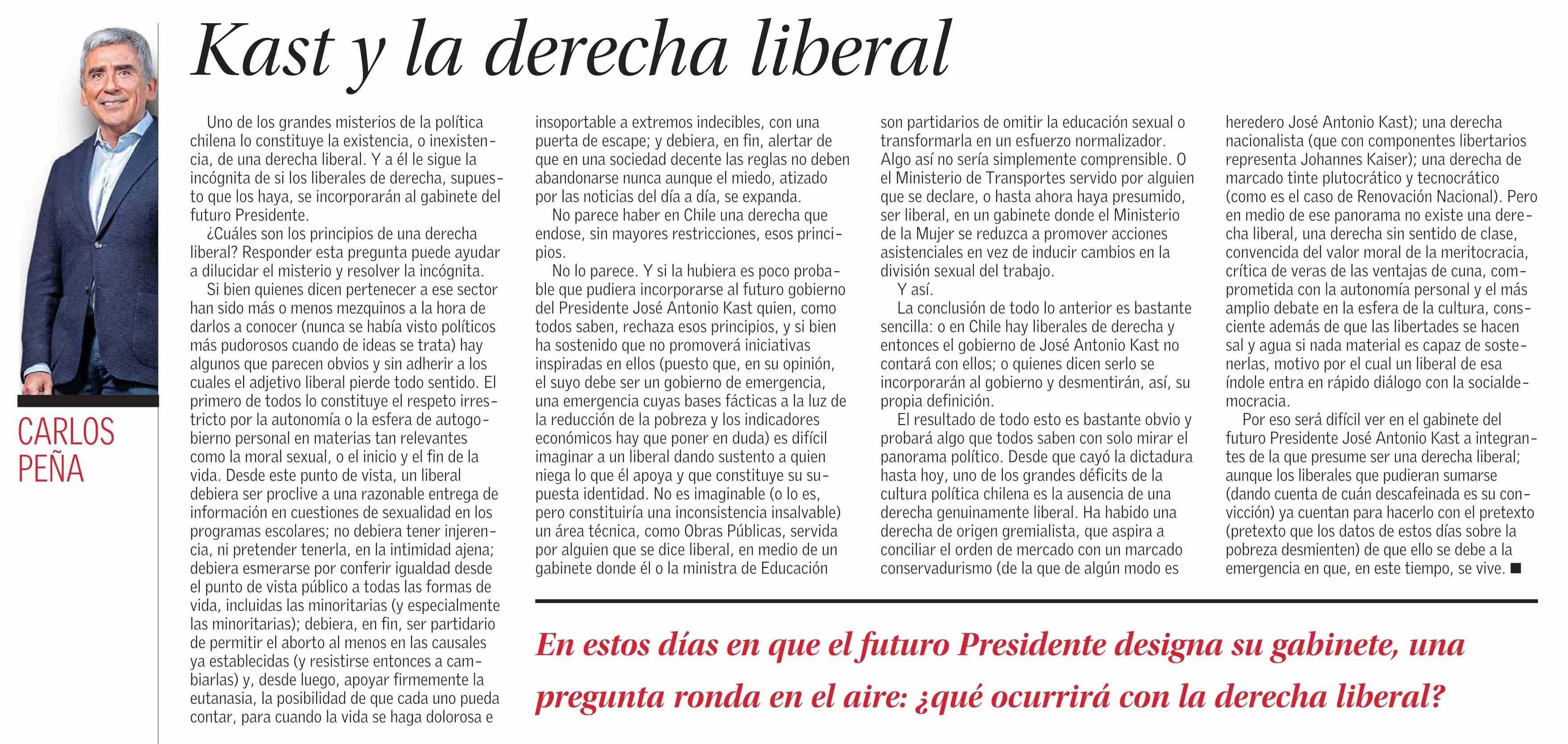 Columnas de Opinión: Kast y la derecha liberal 11-01-2026 El Mercurio |