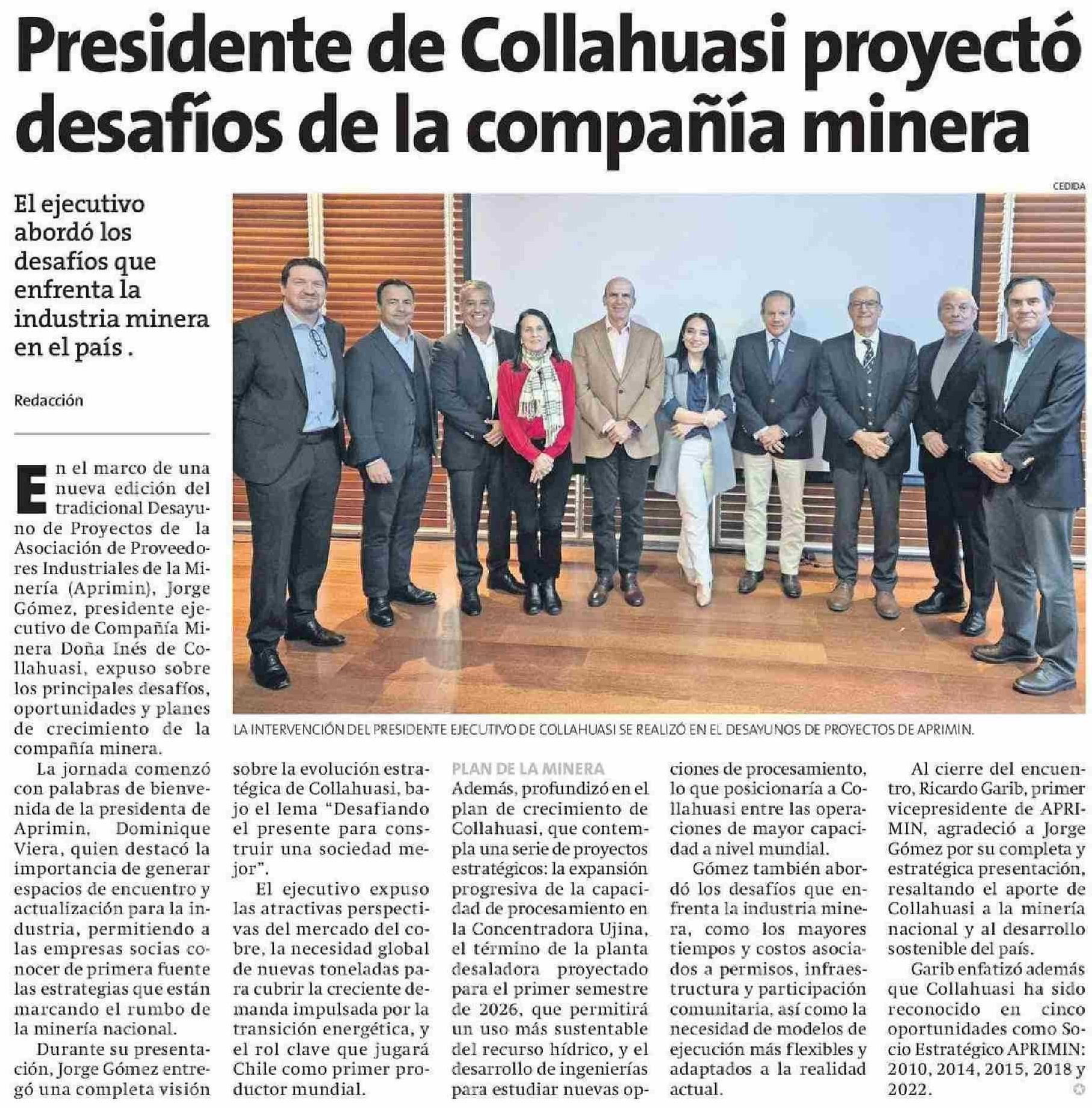 Título: Presidente de Collahuasi proyectó desafios de la compañía minera