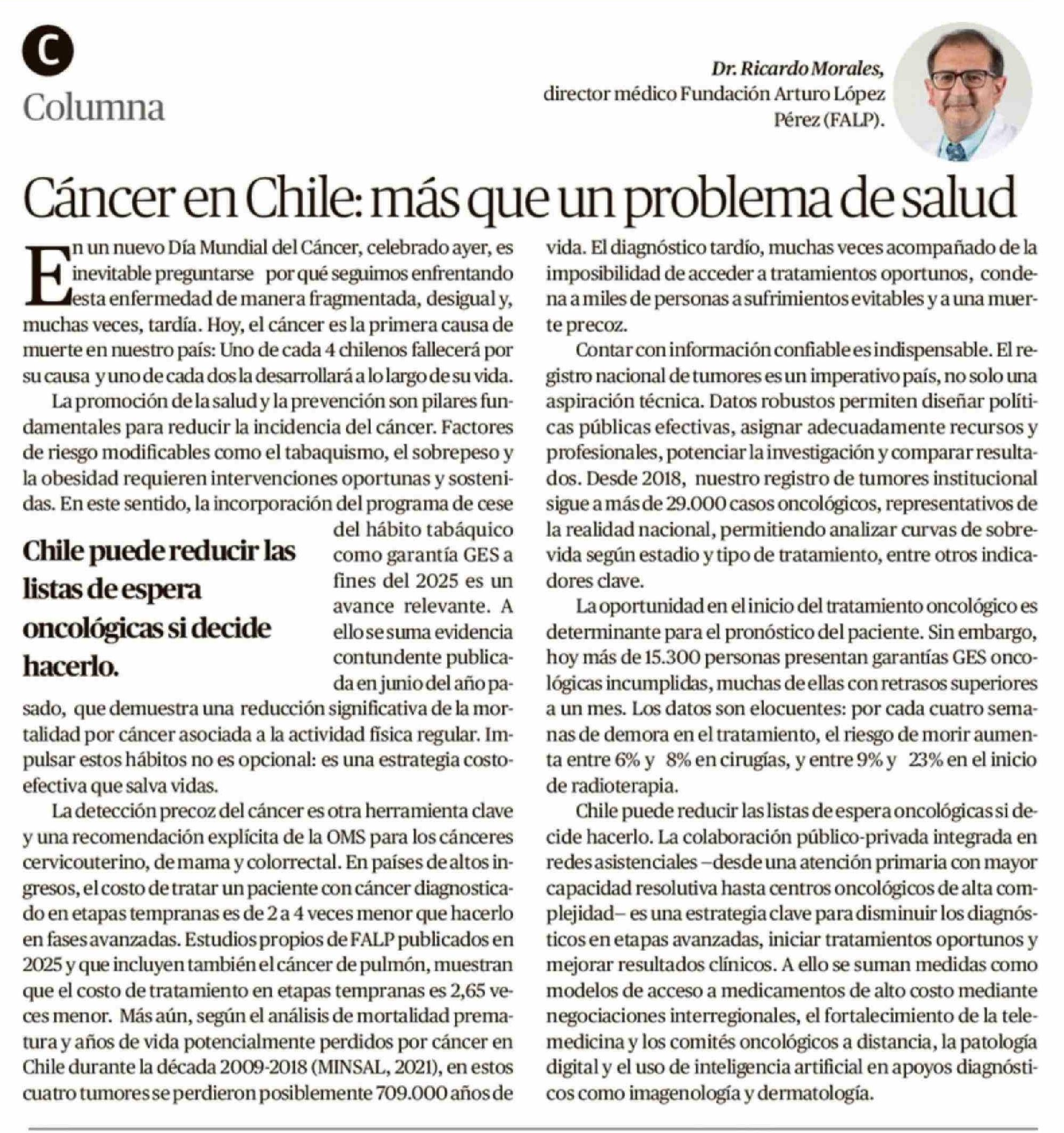 Columnas de Opinión: Cáncer en Chile: más que un problema de salud 05-02-2026 El Austral de la Araucanía |