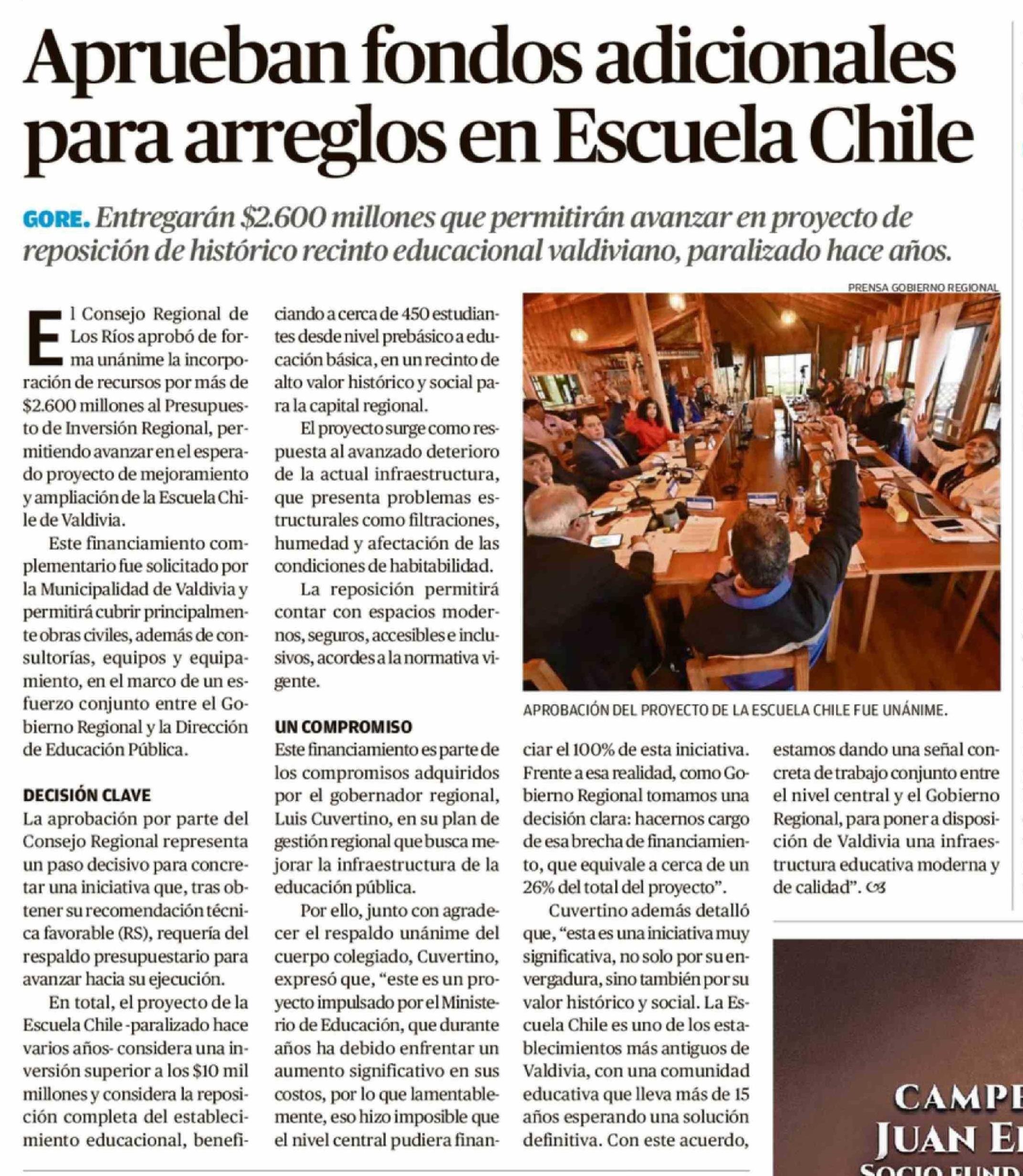 Aprueban fondos adicionales para arreglos en Escuela Chile 20-03-2026 Diario Austral Región de Los Ríos |
