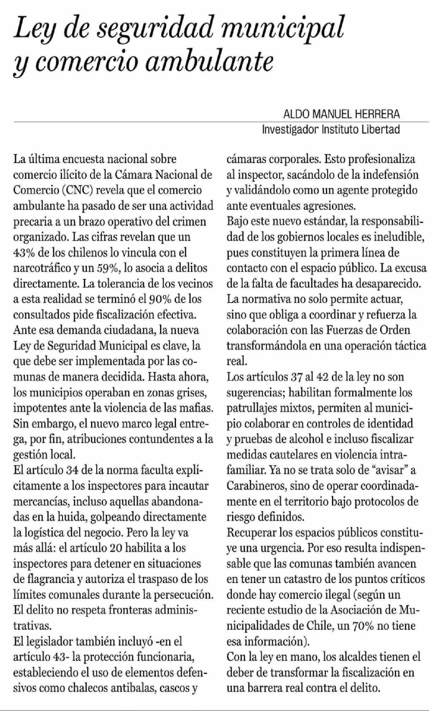 Columnas de Opinión: Ley de seguridad municipal y comercio ambulante 20-02-2026 La Prensa de Curicó |
