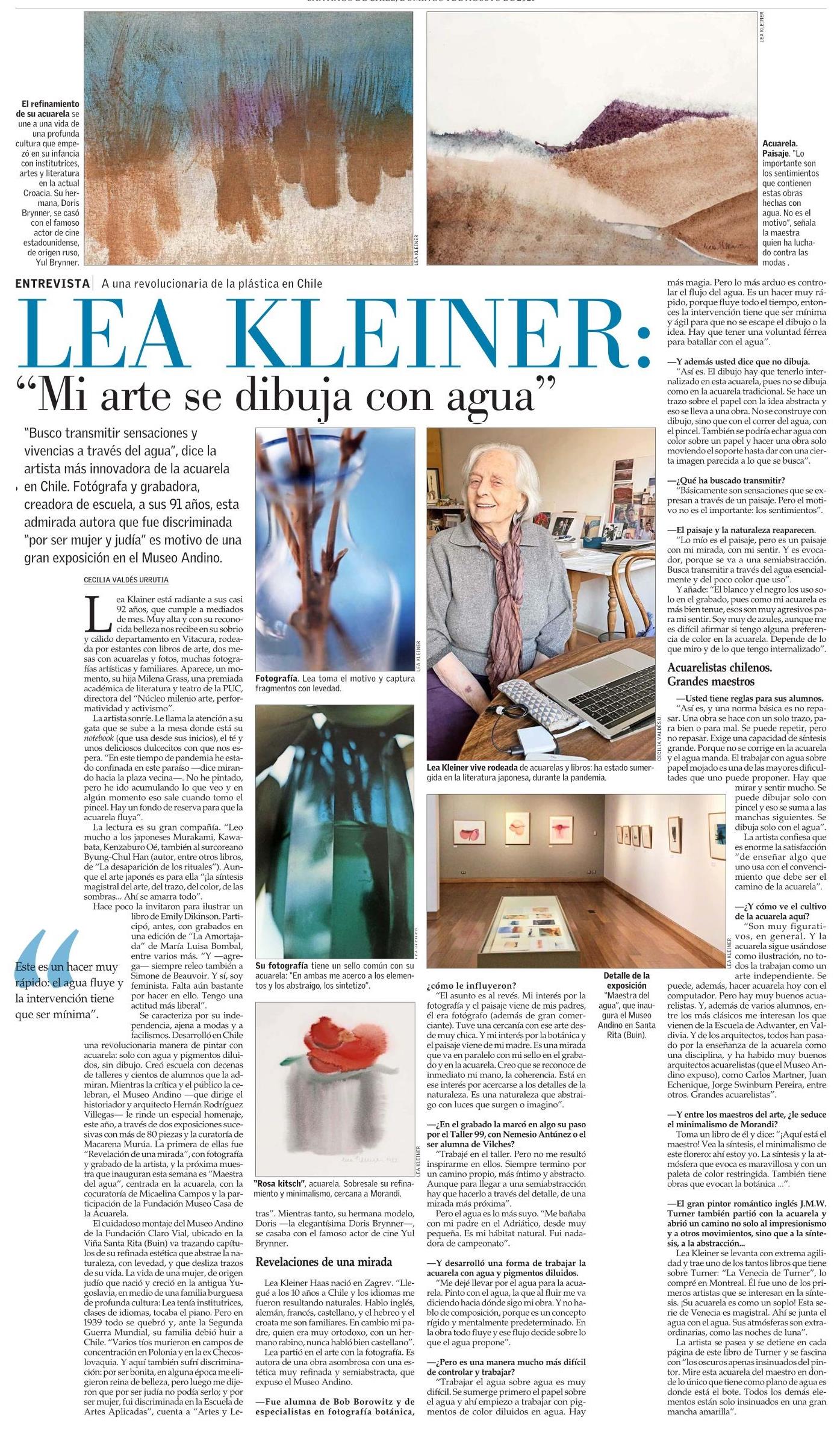 LEA KLEINER: "Mi arte se dibuja con agua" 01-08-2021 El Mercurio |