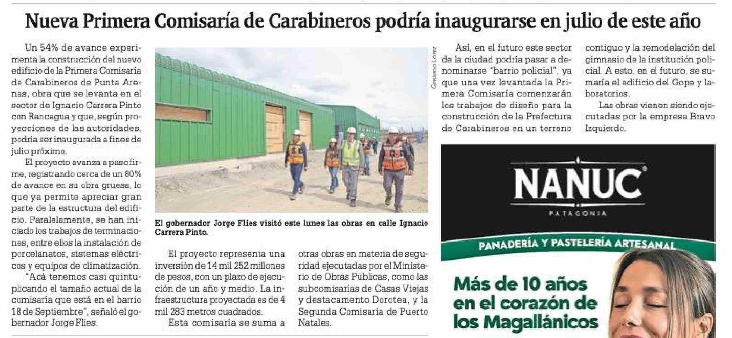 Nueva Primera Comisaría de Carabineros podría inaugurarse en julio de este año 13-01-2026 La Prensa Austral |