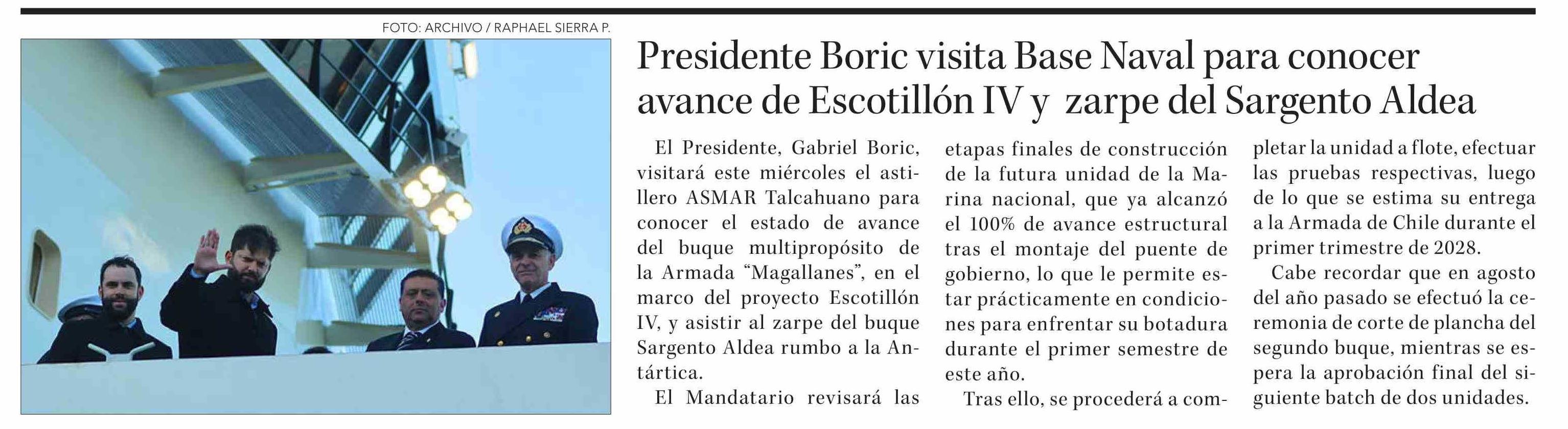 Presidente Boric visita Base Naval para conocer avance de Escotillón IV y zarpe del Sargento Aldea 14-01-2026 Diario Concepción |
