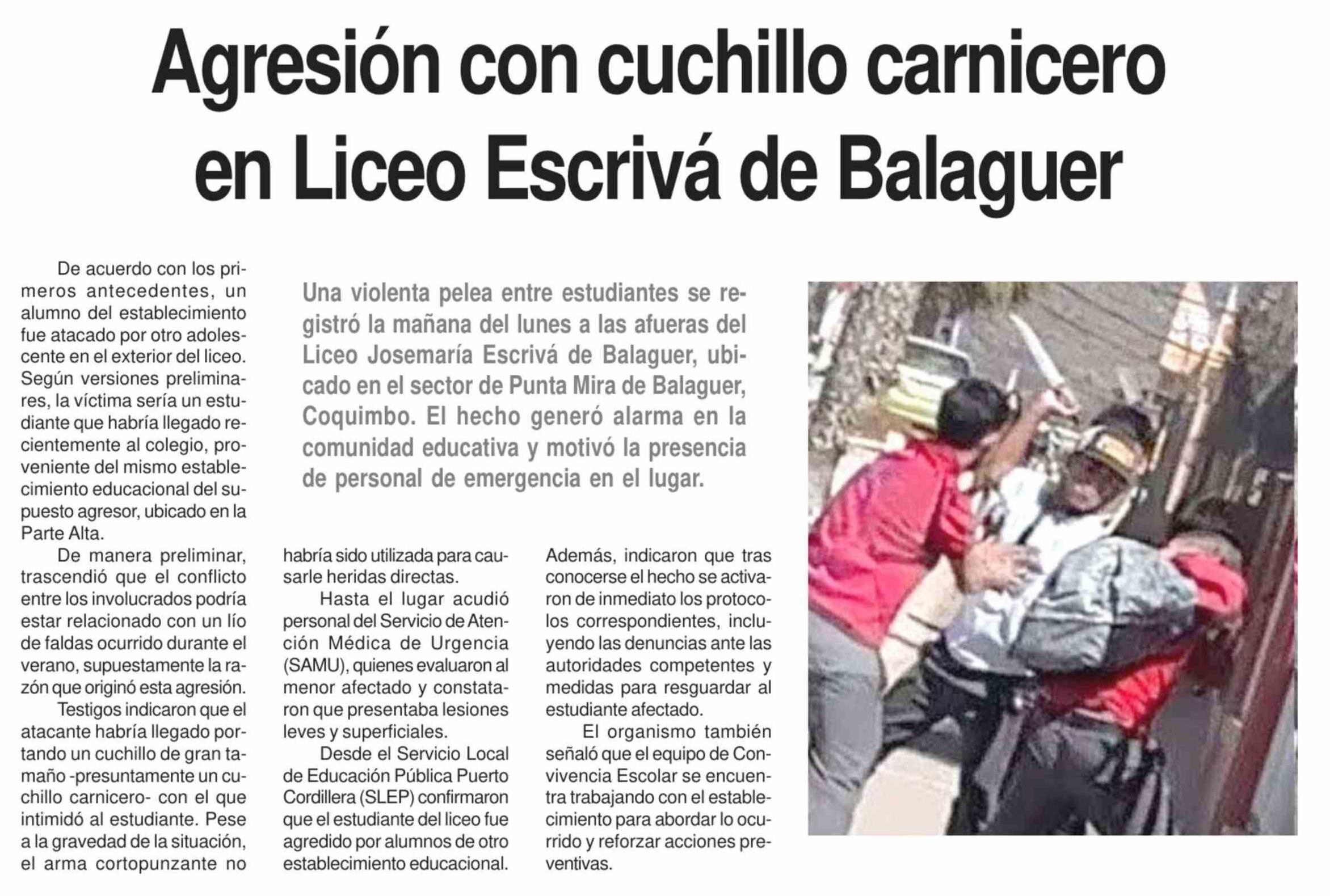 Agresión con cuchillo carnicero en Liceo Escrivá de Balaguer 10-03-2026 Diario la Región |