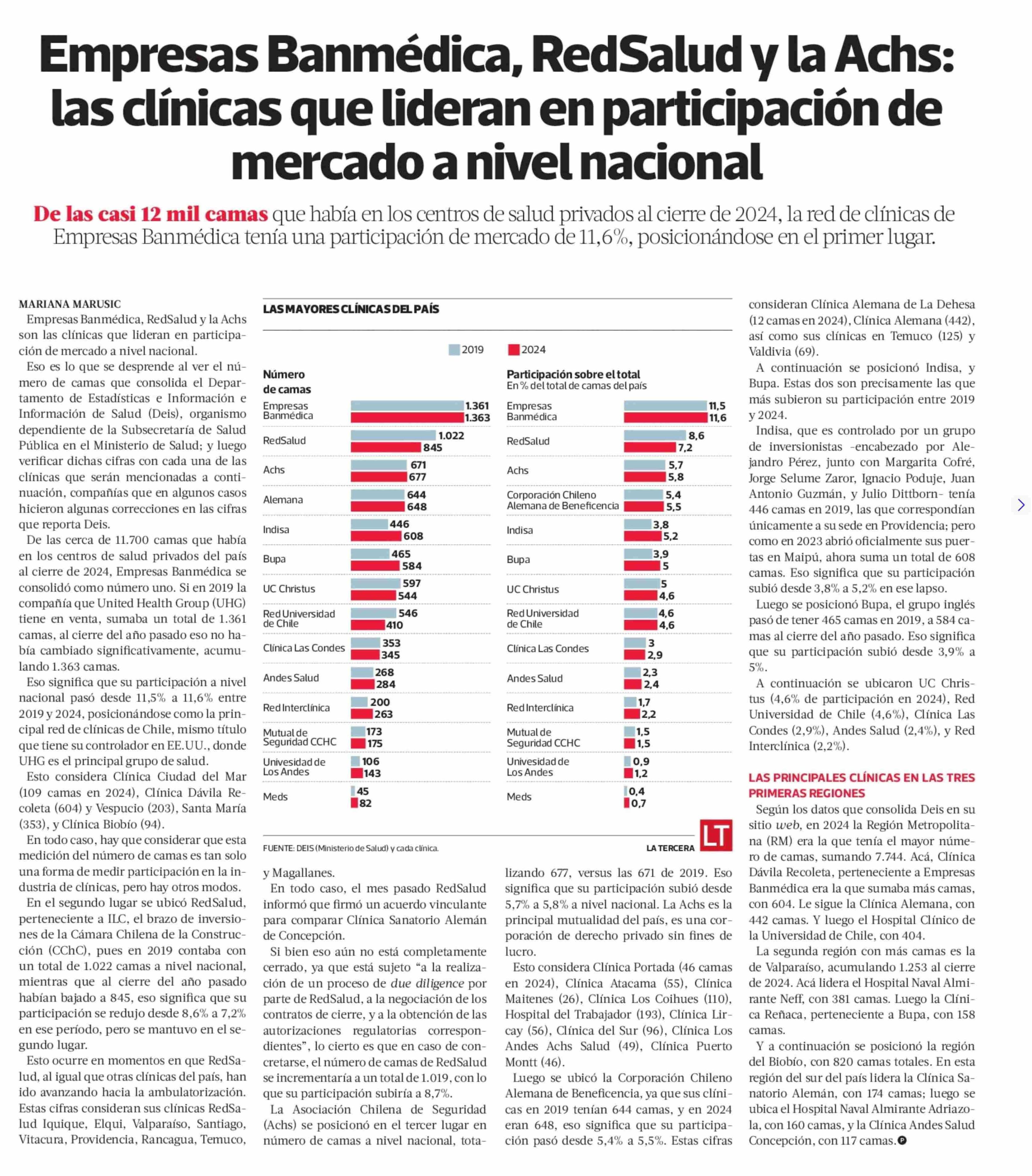 Título: Empresas Banmédica, RedSalud y la Achs: las clínicas que lideran en participación de mercado a nivel nacional