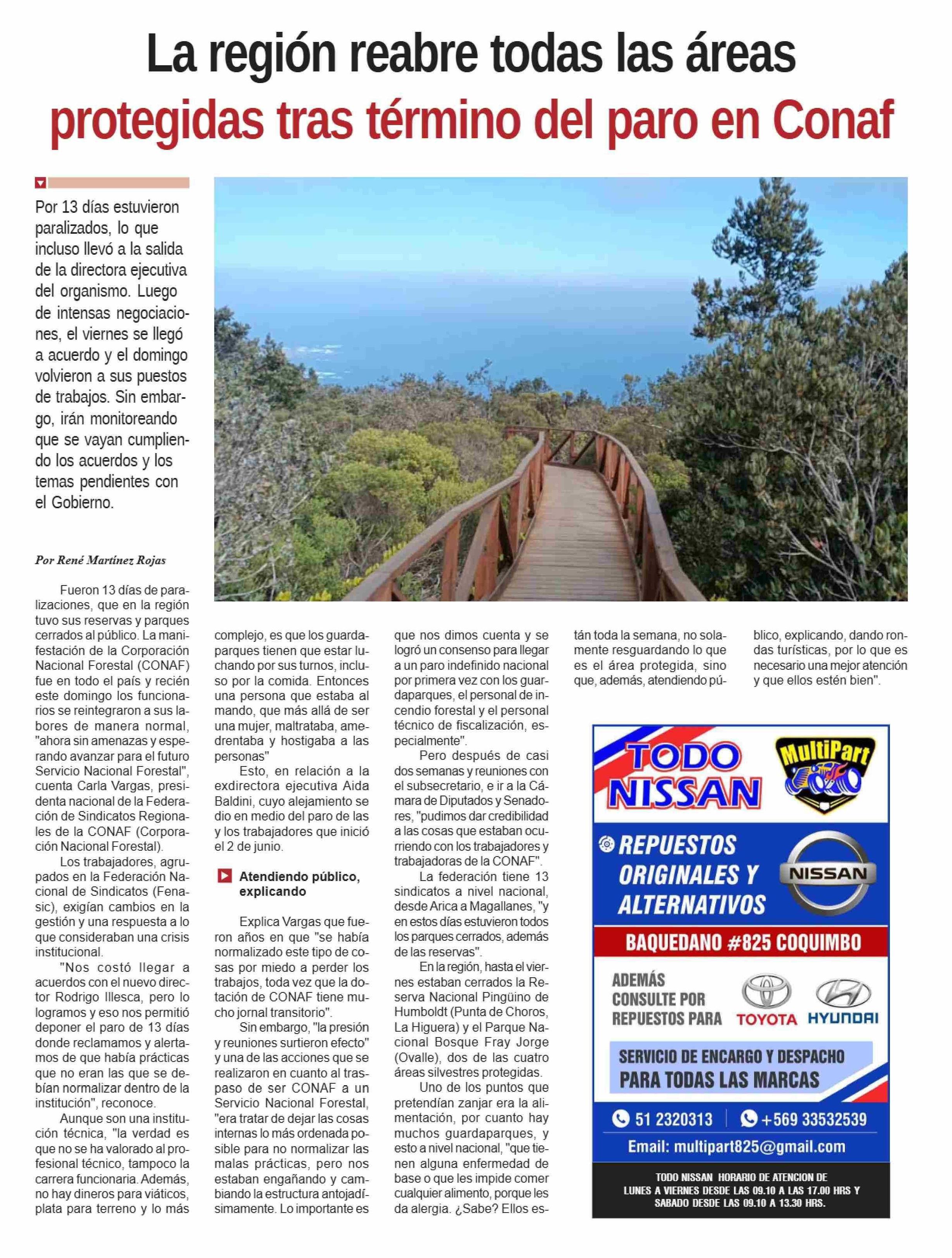 La región reabre todas las áreas protegidas tras término del paro en Conaf 17-06-2025 Diario la Región |