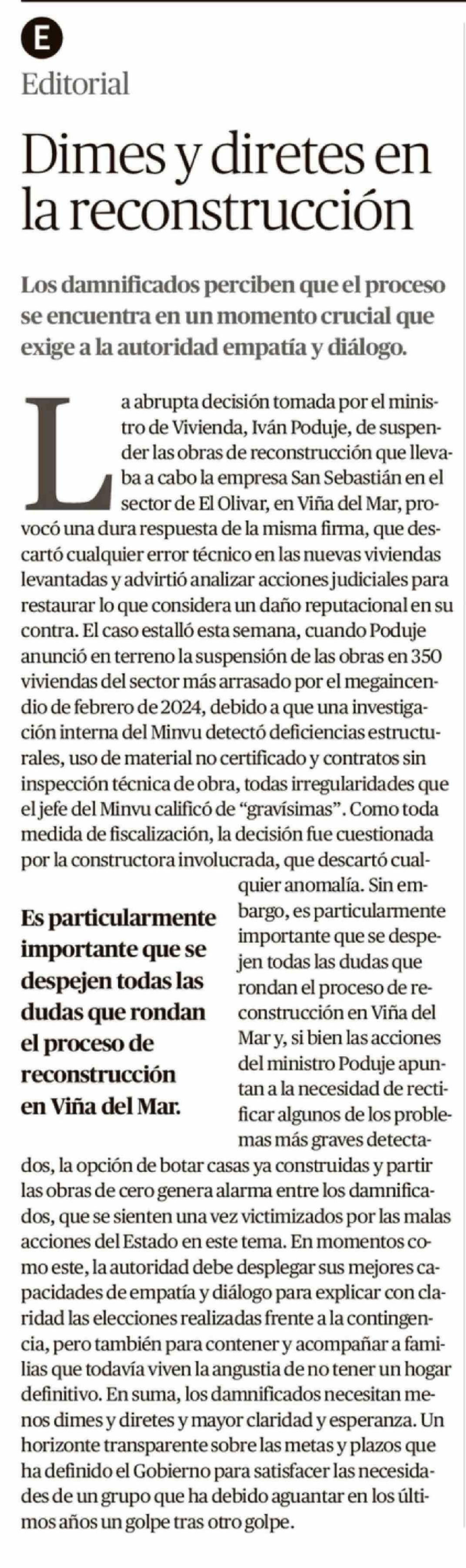 Dimes y diretes en la reconstrucción 27-03-2026 El Mercurio de Valparaíso |