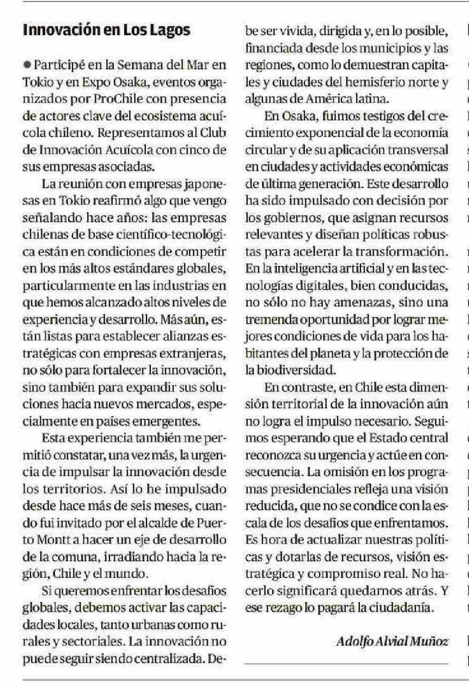 Cartas: Innovación en Los Lagos 13-06-2025 El Llanquihue |