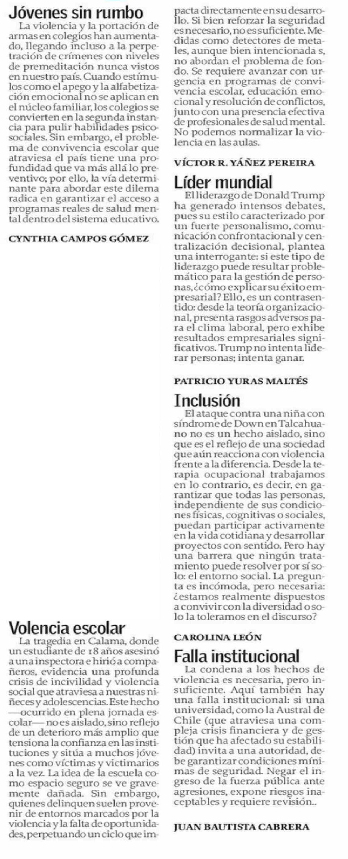 CARTAS: Volencia escolar 10-04-2026 El Sur |