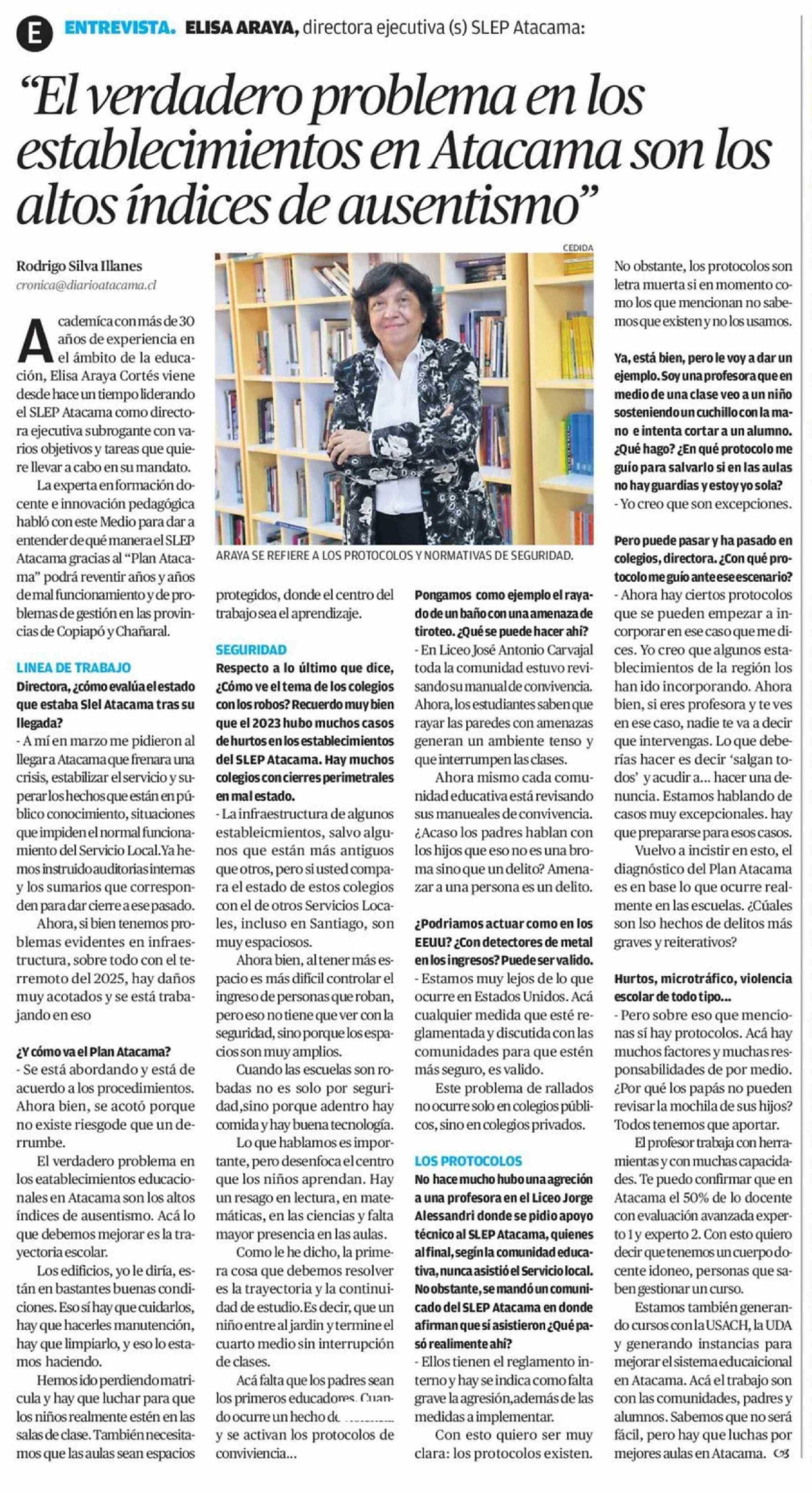 Título: "El verdadero problema en los establecimientos en Atacama son los altos índices de ausentismo"
