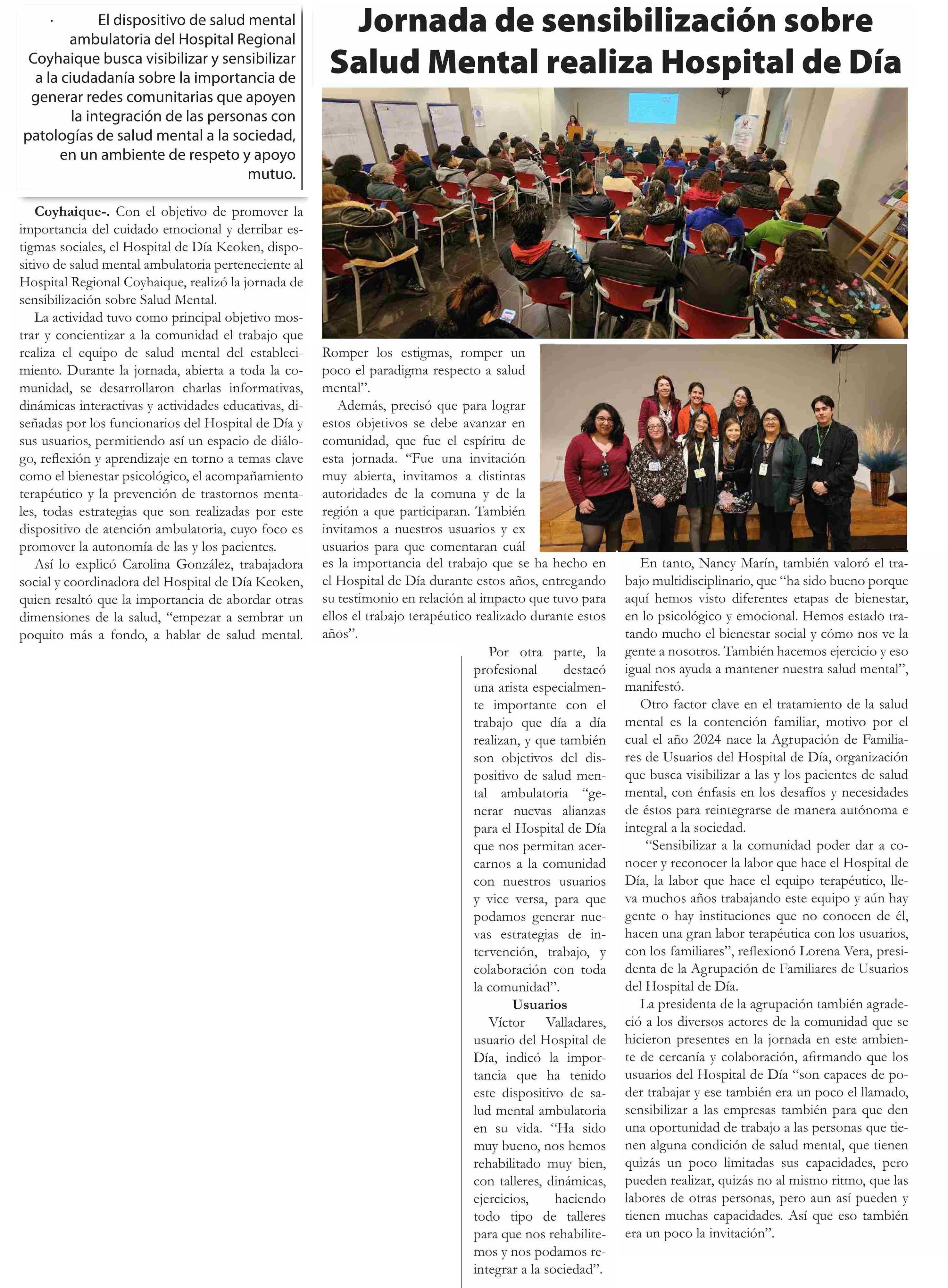 Título: Jornada de sensibilización sobre Salud Mental realiza Hospital de Día