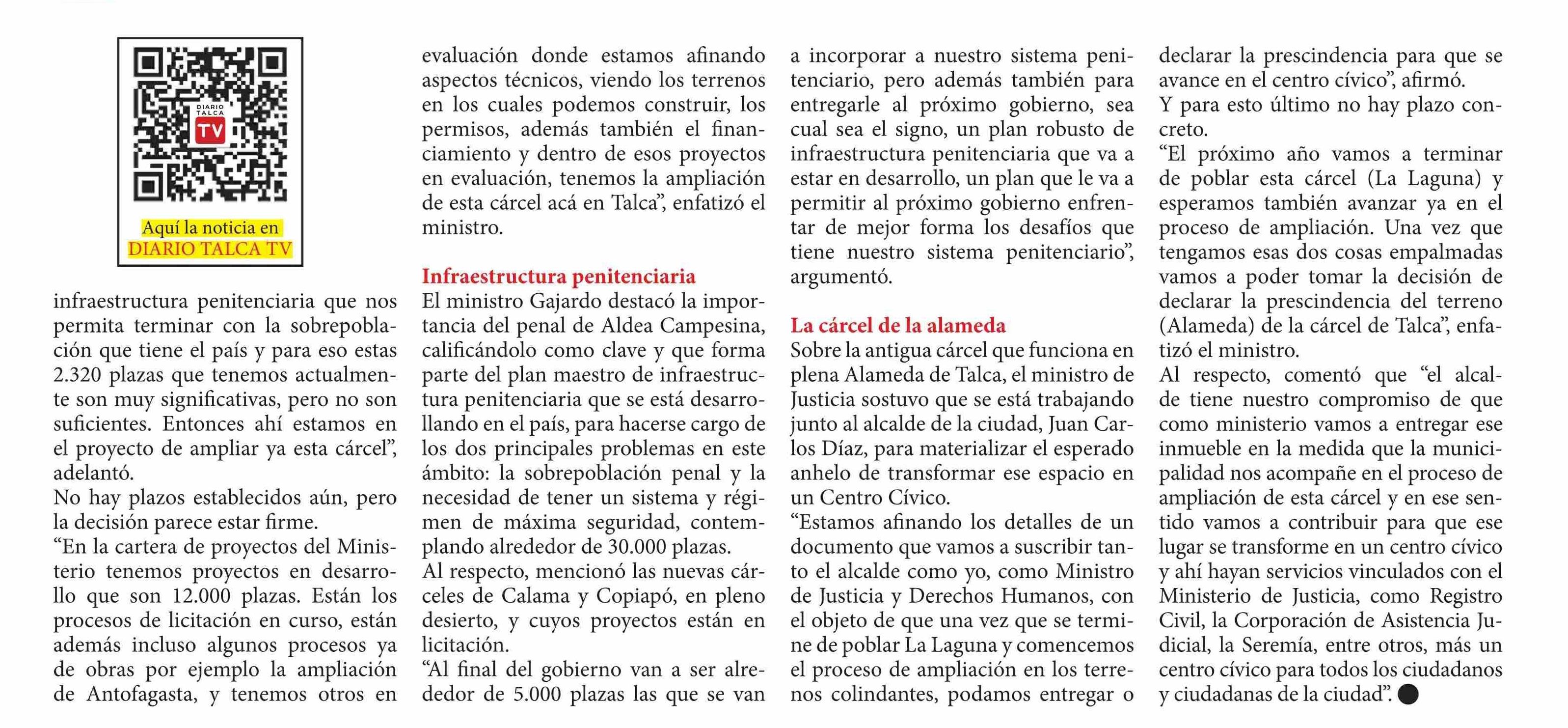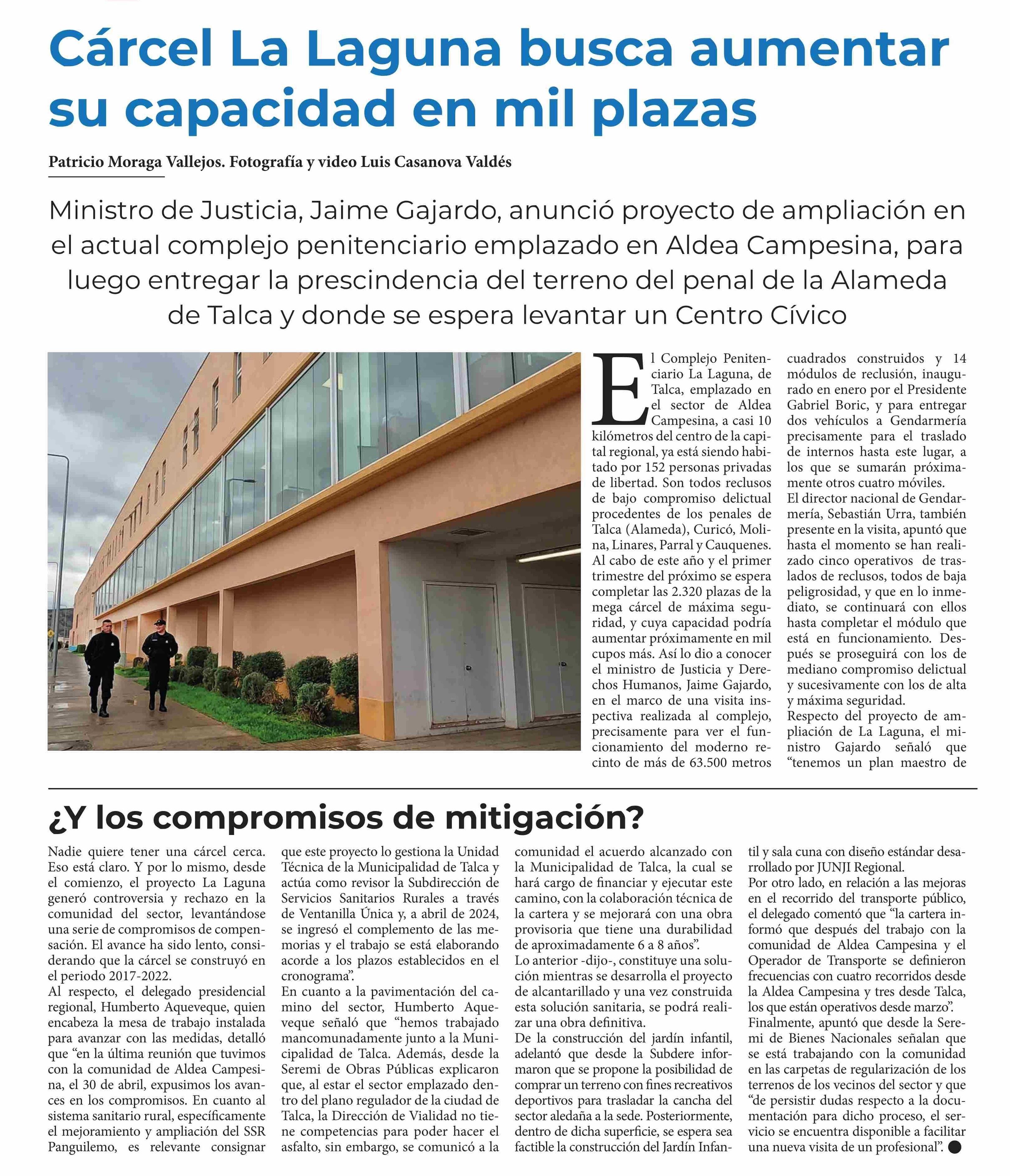 Cárcel La Laguna busca aumentar su capacidad en mil plazas 11-05-2025 Diario Talca |