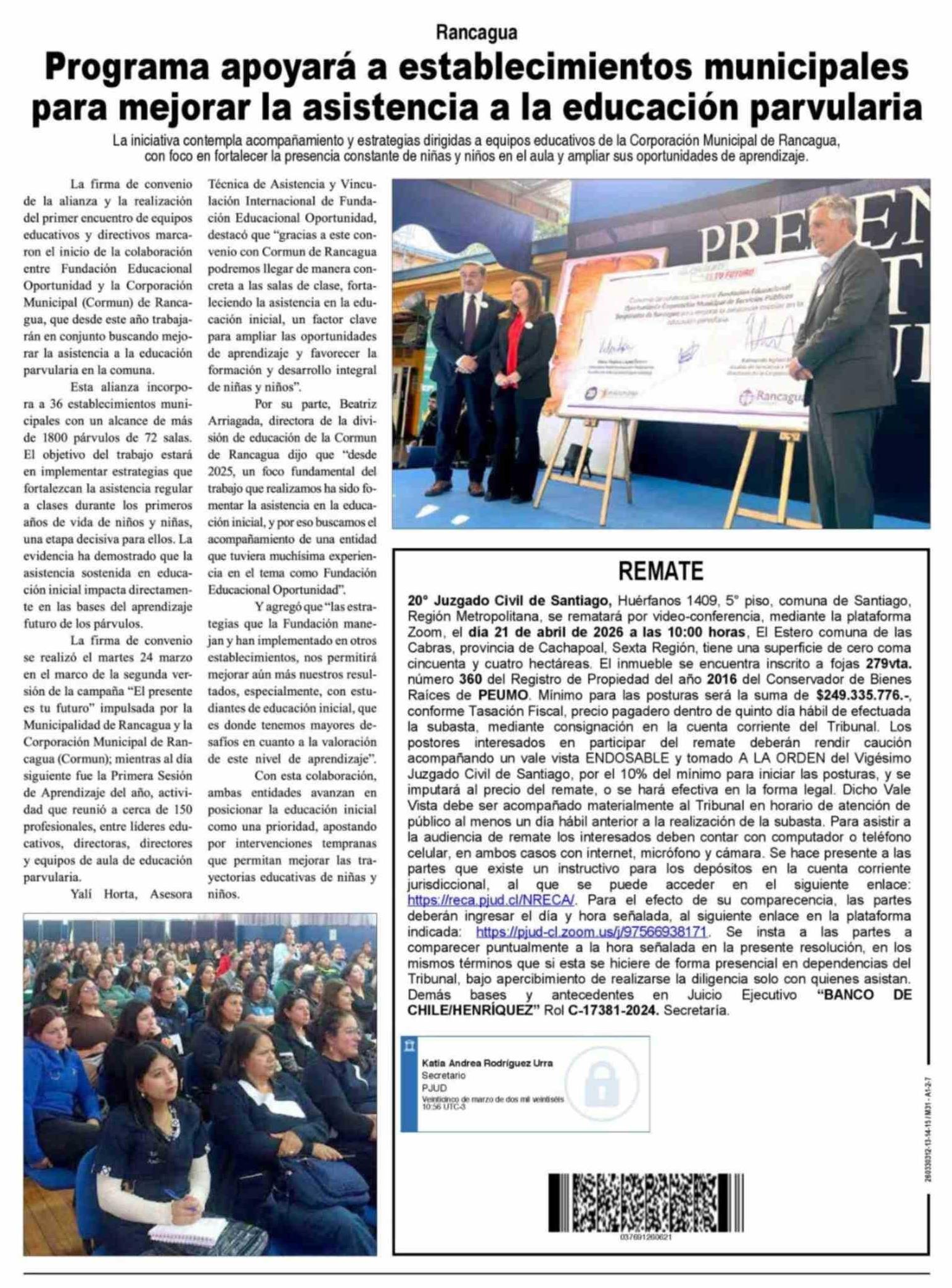 Programa apoyará a establecimientos municipales para mejorar la asistencia a la educación parvularia 31-03-2026 Diario VI Región |