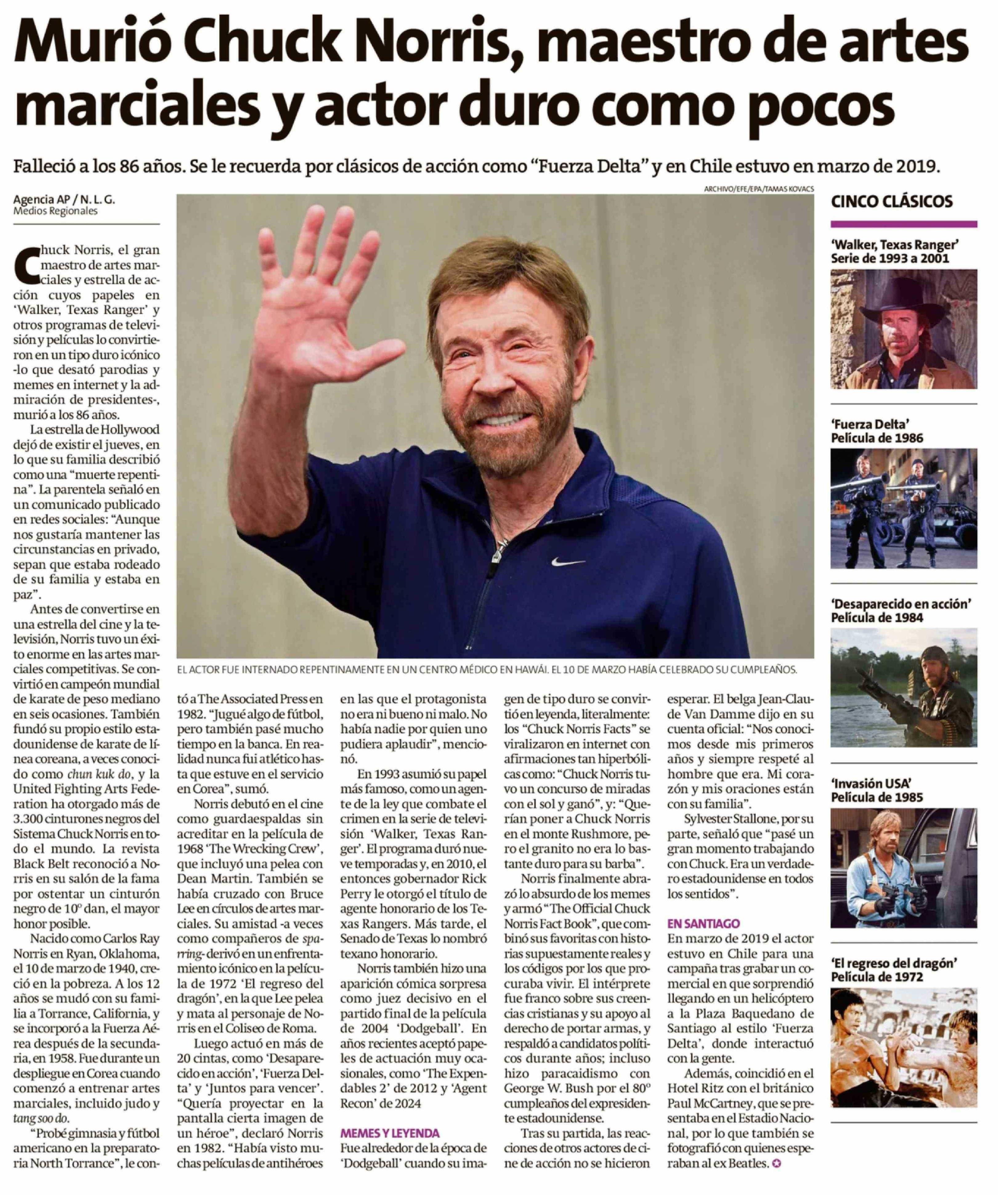 Título: Murió Chuck Norris, maestro de artes marciales y actor duro como pocos