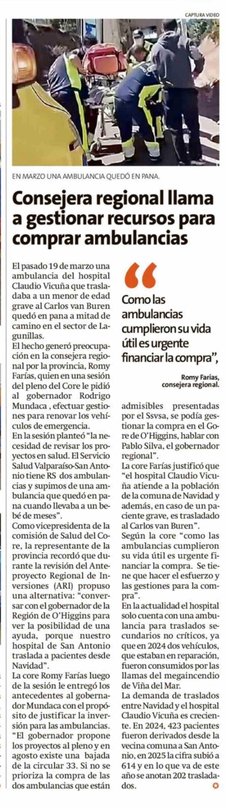 Consejera regional llama a gestionar recursos para comprar ambulancias 13-04-2026 El Líder |