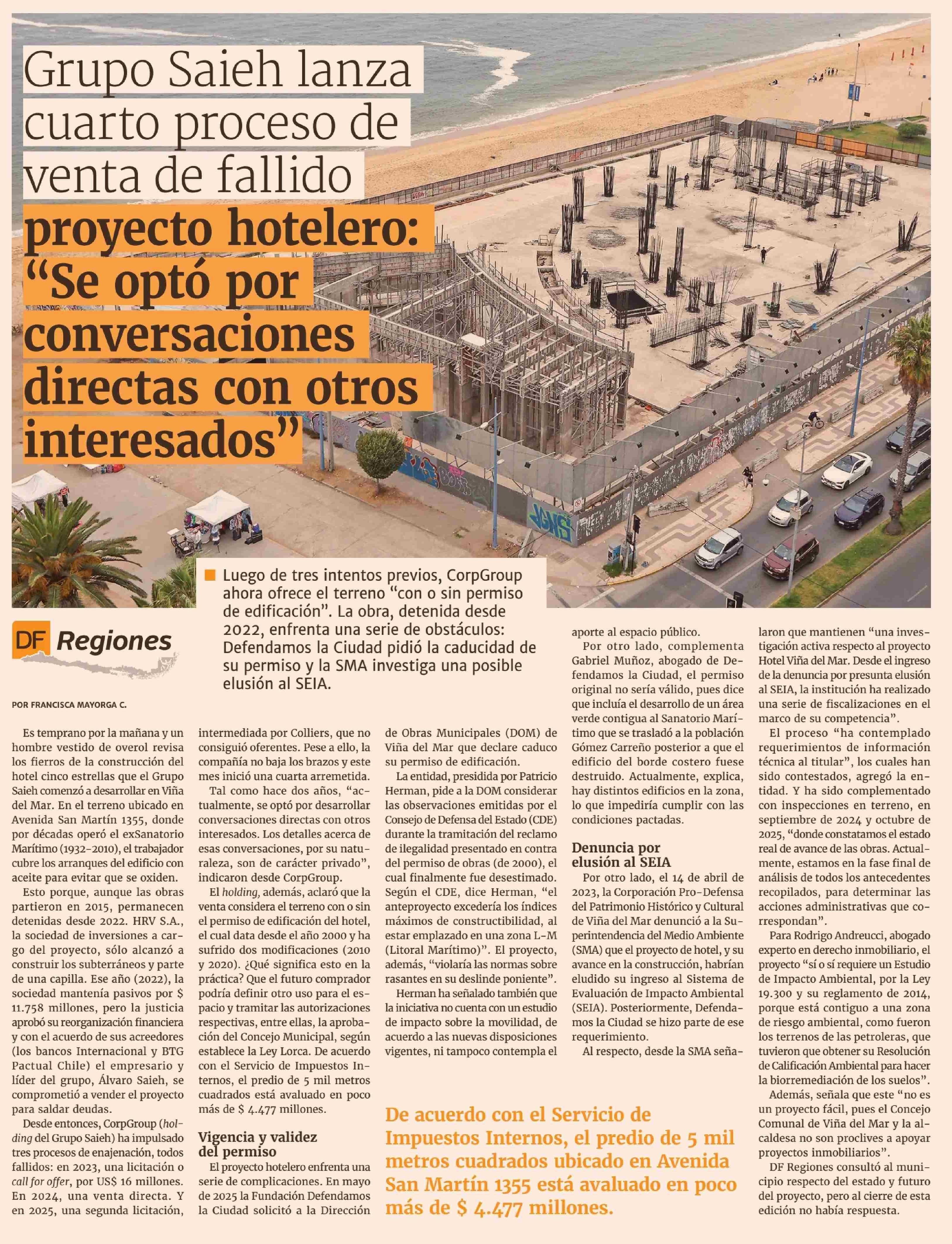 Grupo Saieh lanza cuarto proceso de venta de fallido proyecto hotelero: "Se optó por conversaciones directas con otros interesados" 23-01-2026 Diario Financiero |