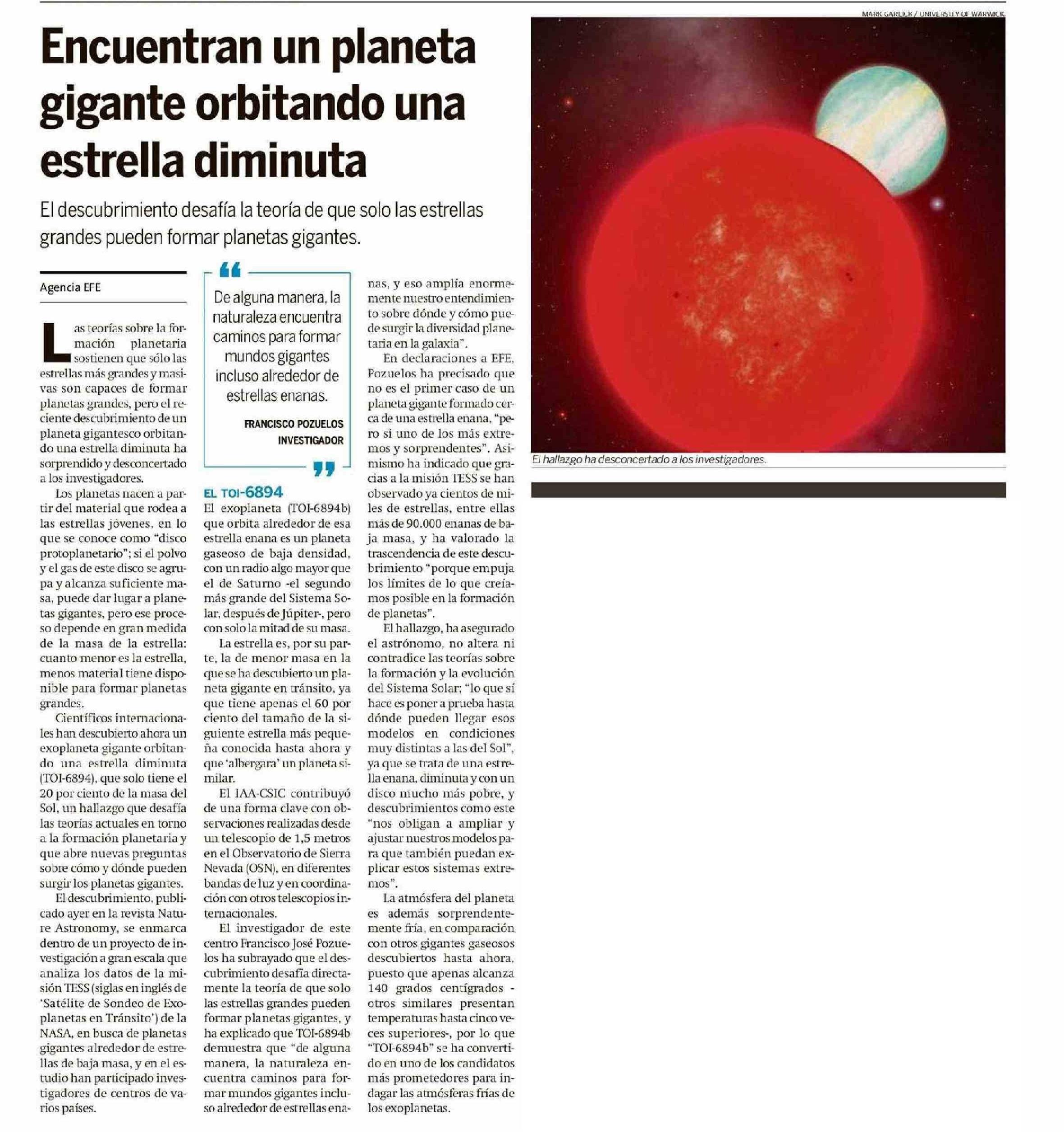 Encuentran un planeta gigante orbitando una estrella diminuta 05-06-2025 Hoy x Hoy |