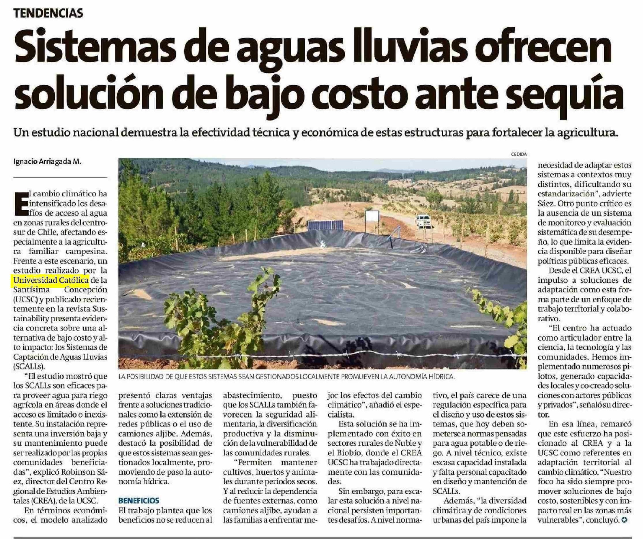Sistemas de aguas lluvias ofrecen solución de bajo costo ante sequla 19-05-2025 El Líder |