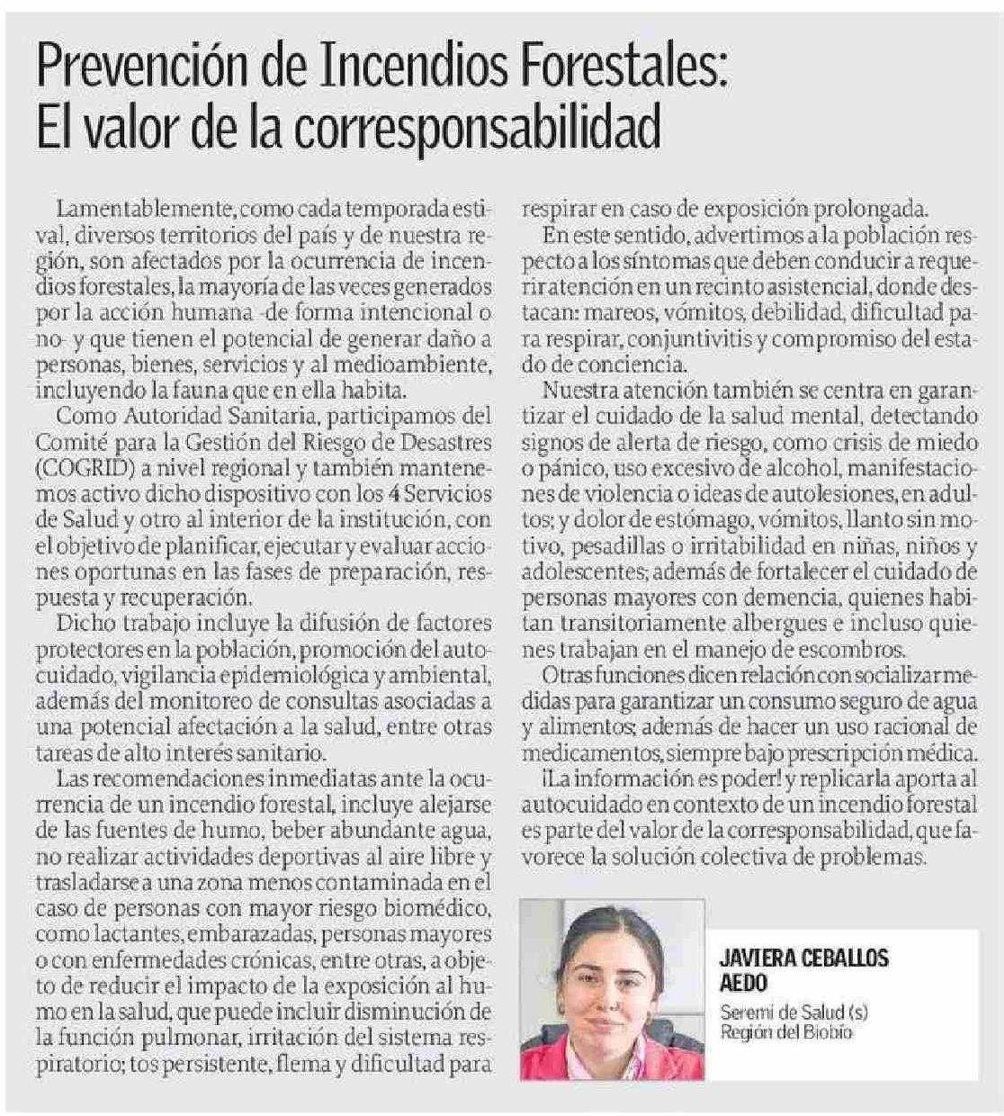 Columnas de Opinión: Prevención de Incendios Forestales: El valor de la corresponsabilidad 11-01-2026 El Sur |