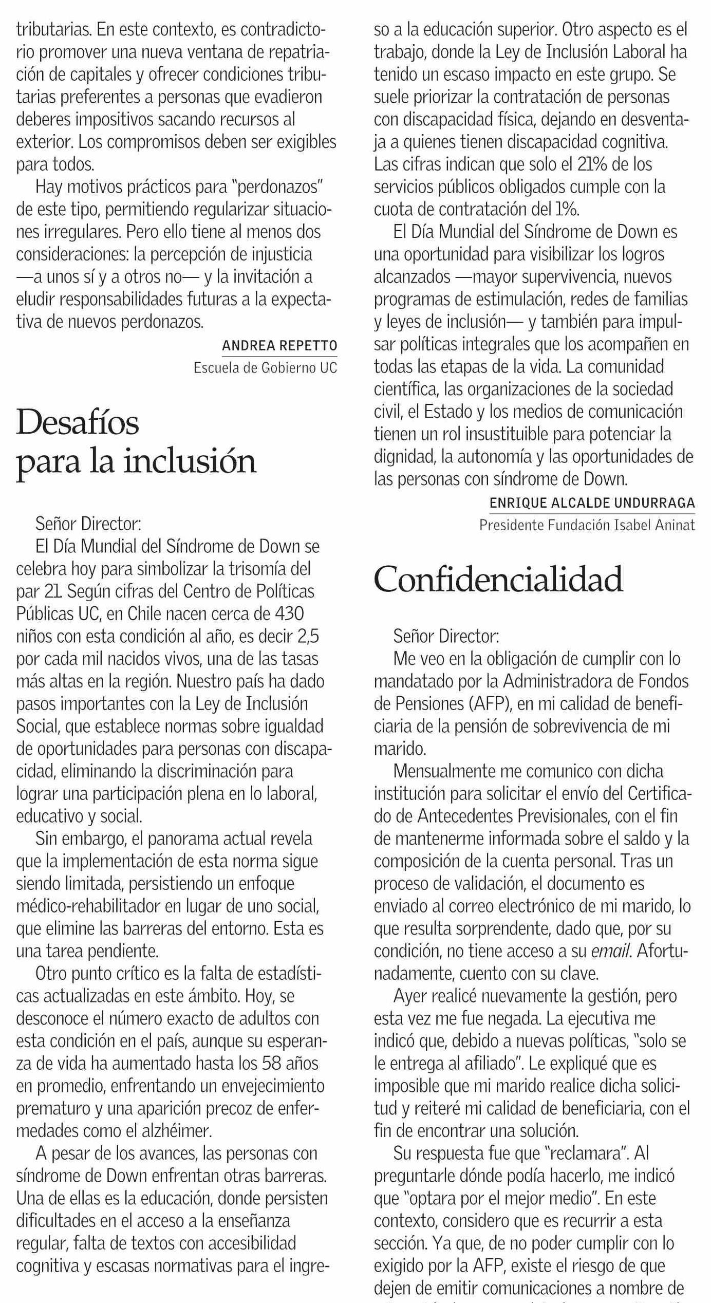 Cartas: Desafíos para la inclusión