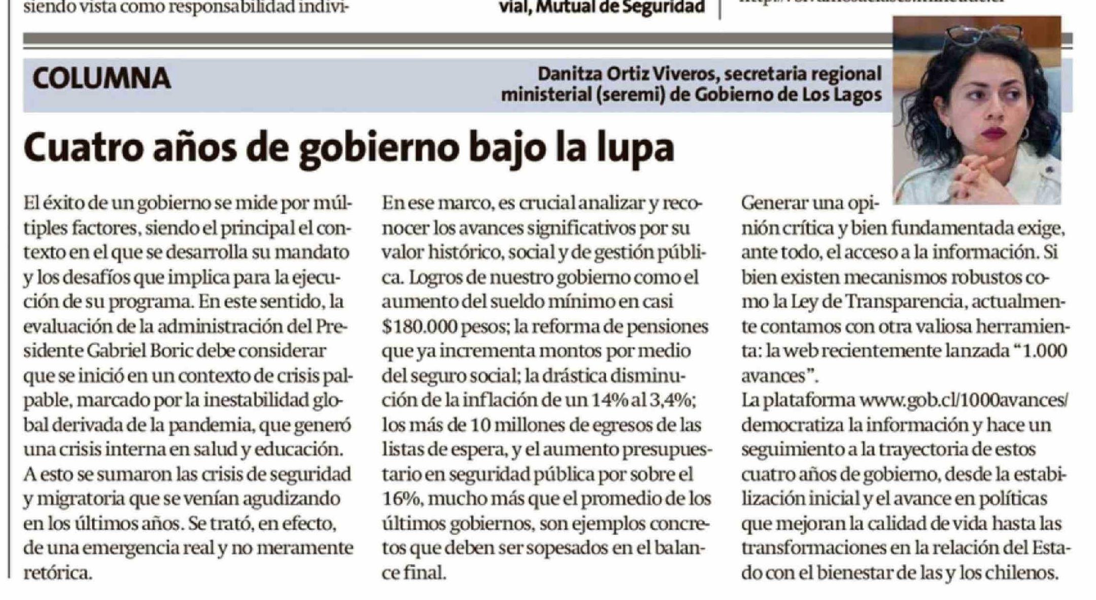 Columnas de Opinión: Cuatro años de gobierno bajo la lupa 28-02-2026 La Estrella de Chiloé |