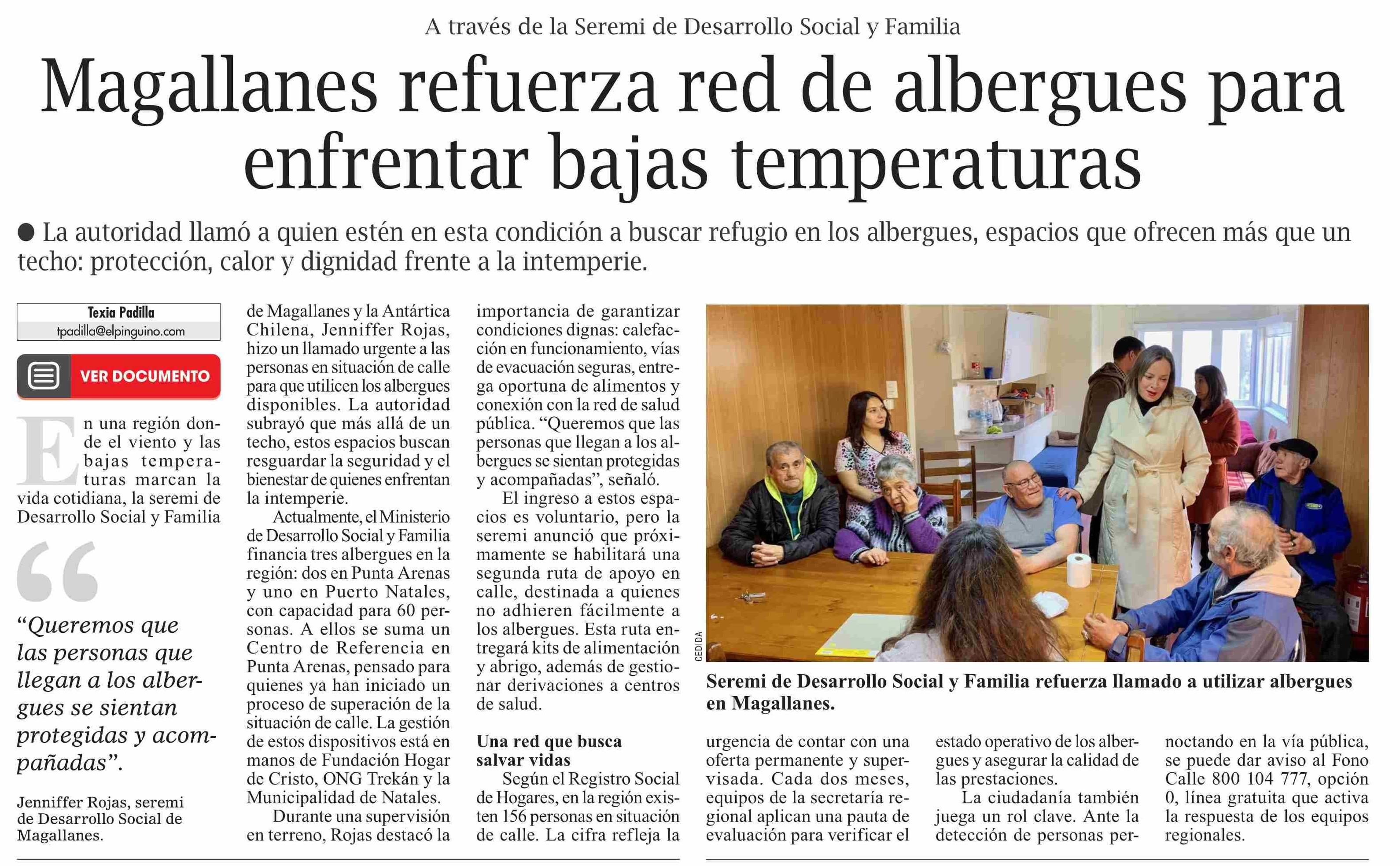 Título: Magallanes refuerza red de albergues para enfrentar bajas temperaturas