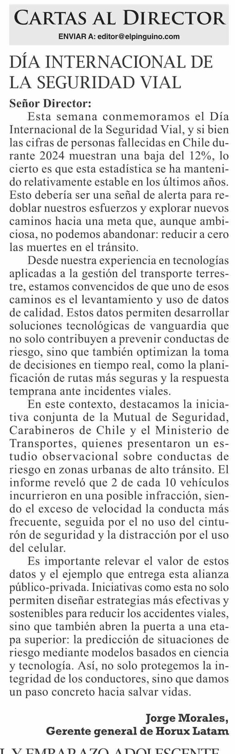 Cartas: Día internacional De la seguriDaD vial 14-06-2025 El Pingüino |