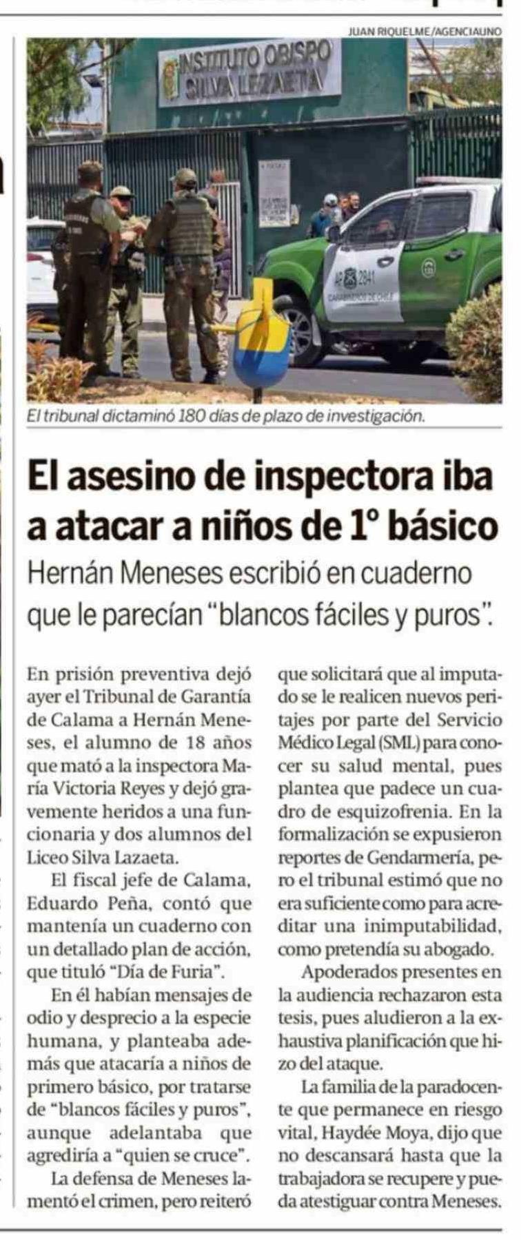 Título: El asesino de inspectora iba a atacar a niños de 1º básico