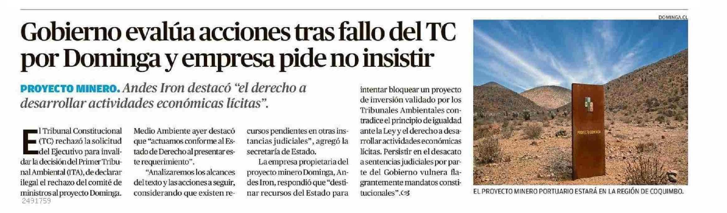 | Título: | Gobierno evalúa acciones tras fallo del TC por Dominga y empresa pide no insistir |