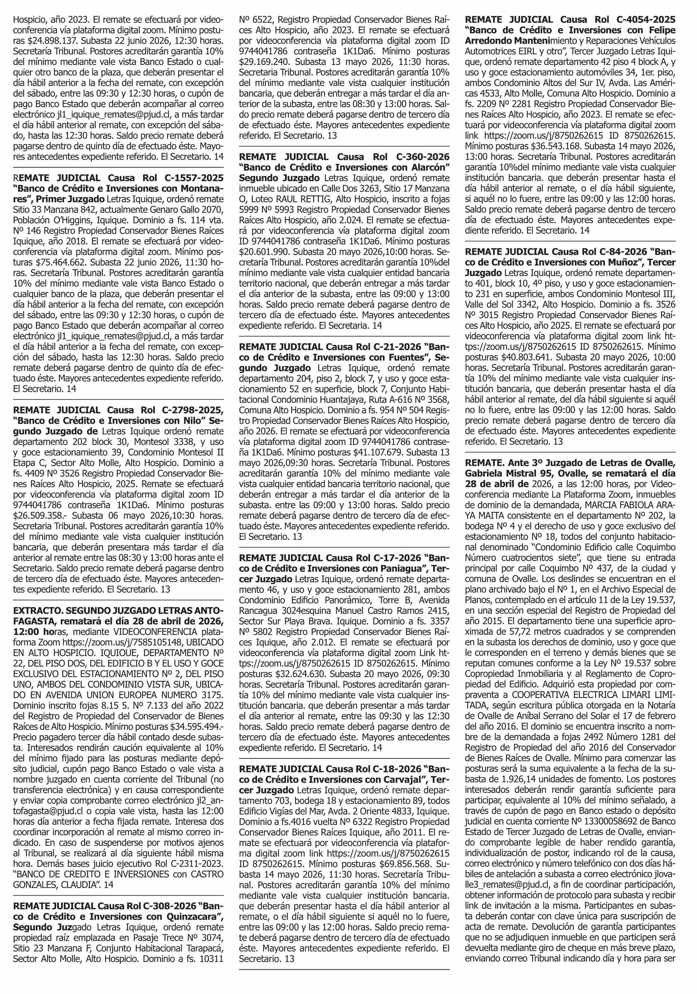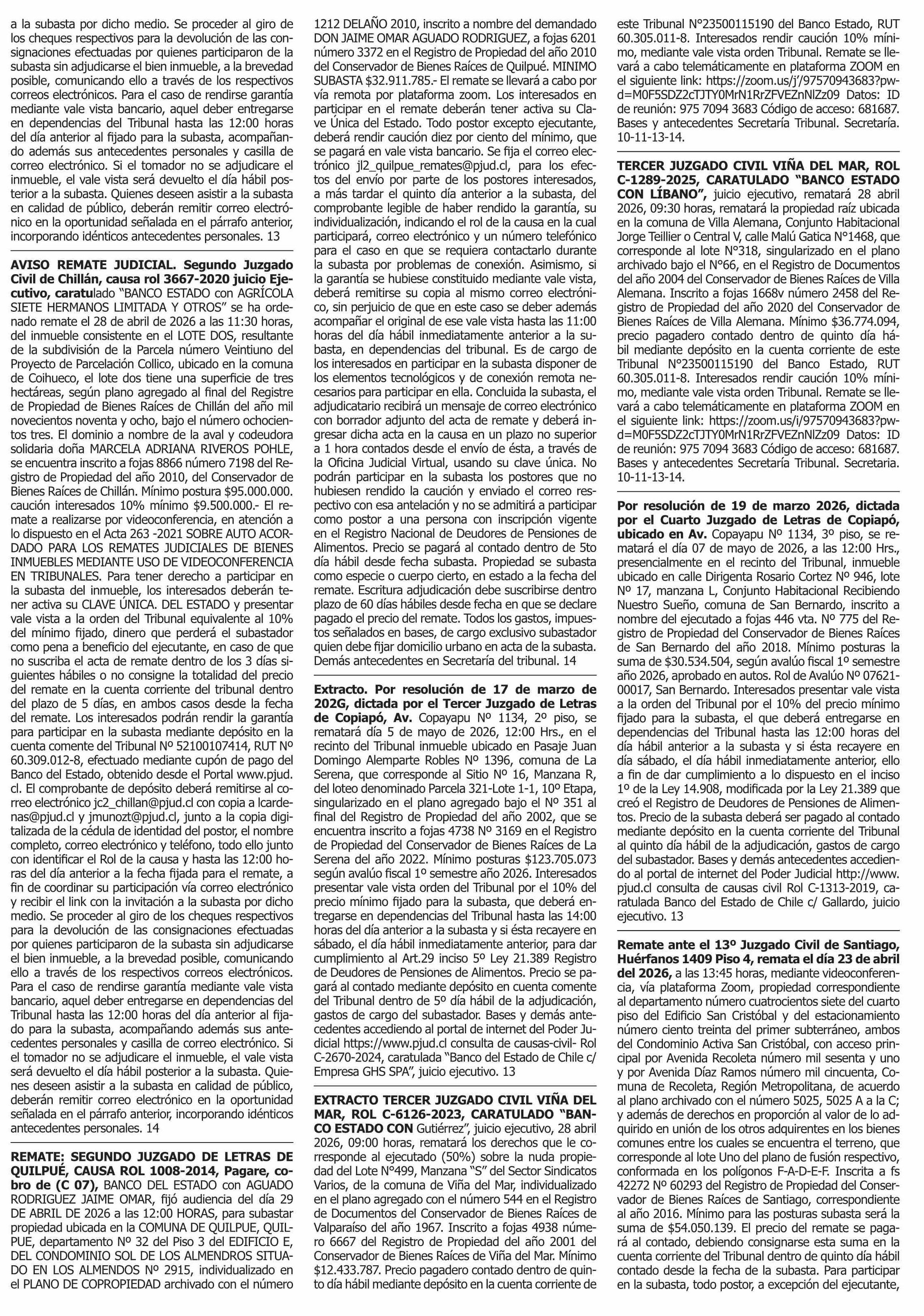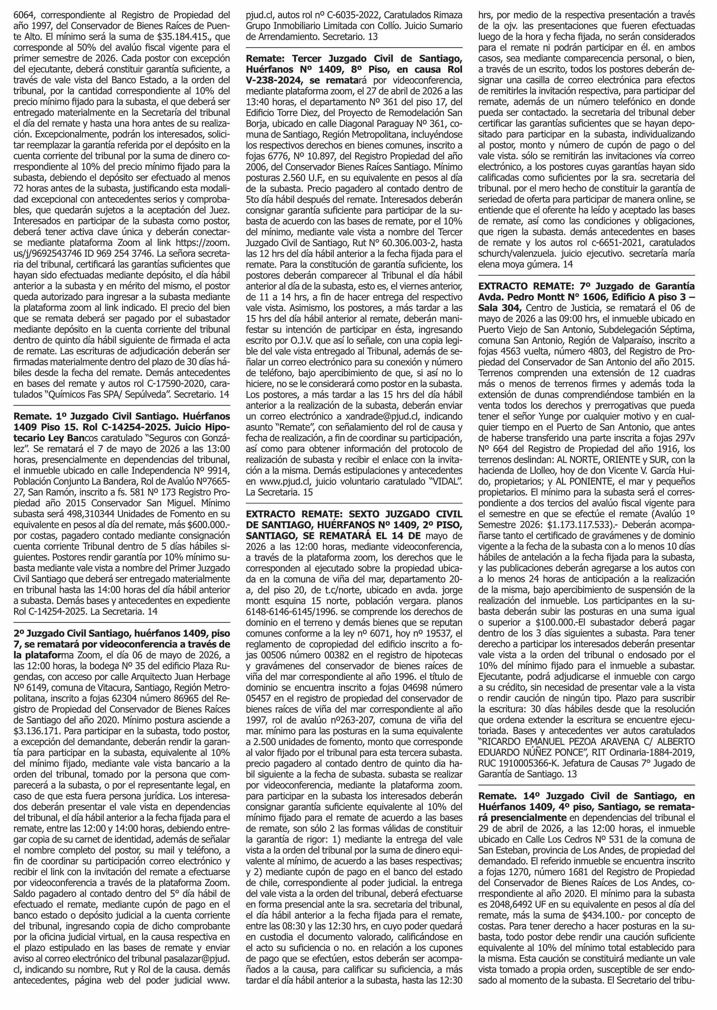 | Fecha: | 13-04-2026 | Sector: | Remates | Región: | Región Metropolitana de Santiago |