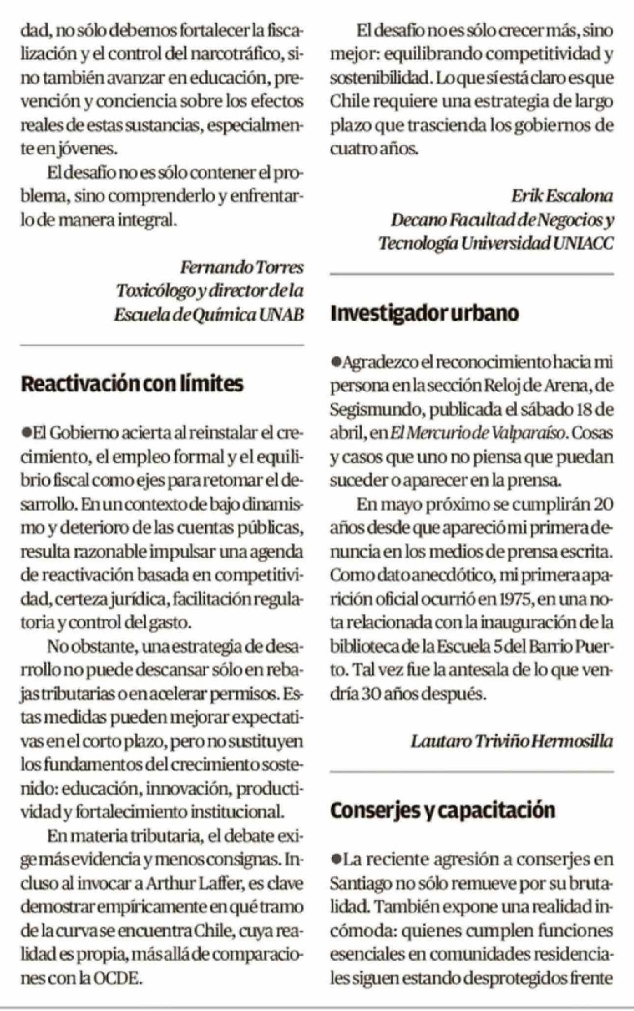 Cartas: Reactivación con límites 22-04-2026 El Mercurio de Valparaíso |