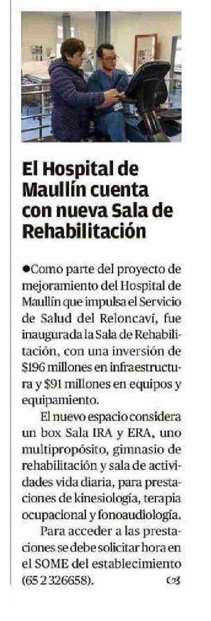 El Hospital de Maullín cuenta con nueva Sala de Rehabilitación 23-05-2025 El Llanquihue |