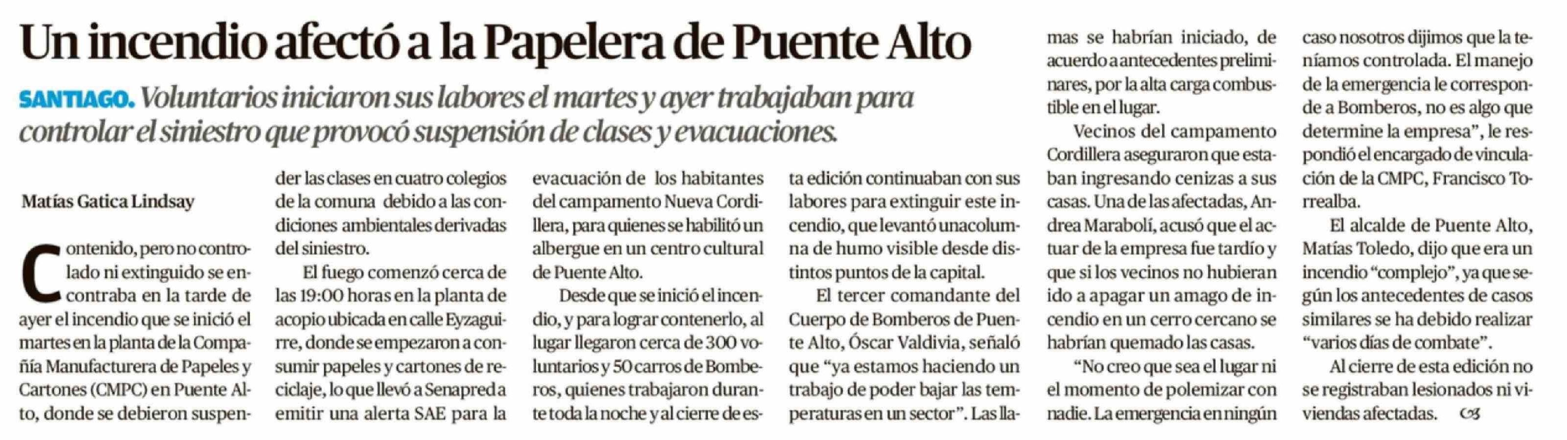 | Título: | Un incendio afectó a la Papelera de Puente Alto |