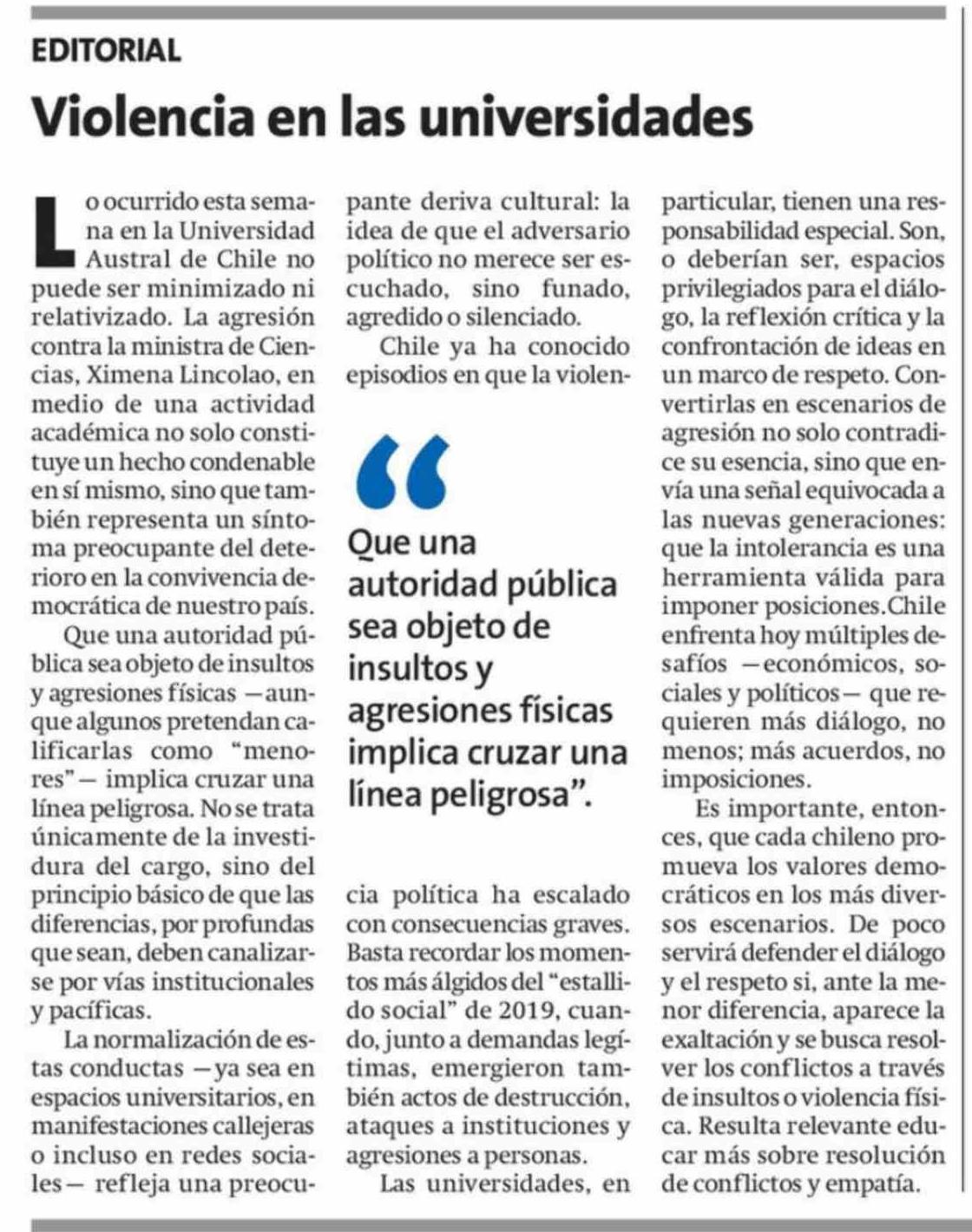 Editorial: Violencia en las universidades 12-04-2026 La Estrella de Iquique |