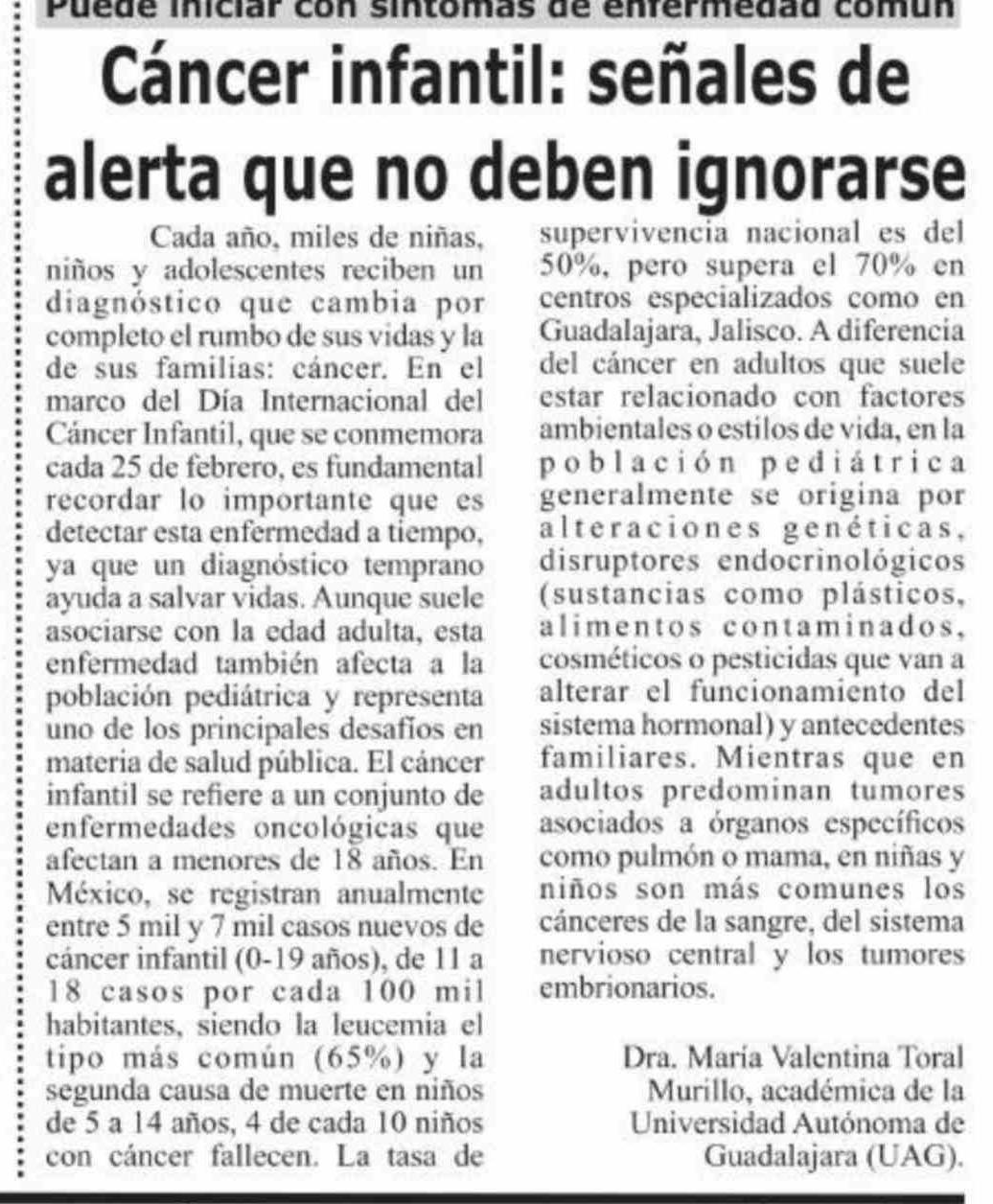 Título: Cáncer infantil: señales de alerta que no deben ignorarse
